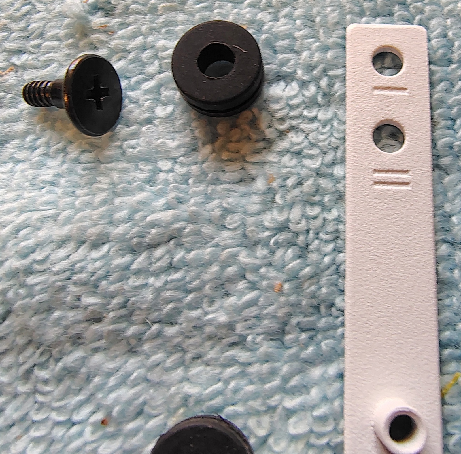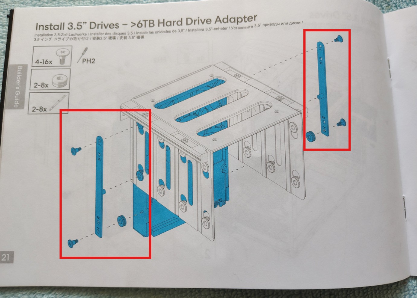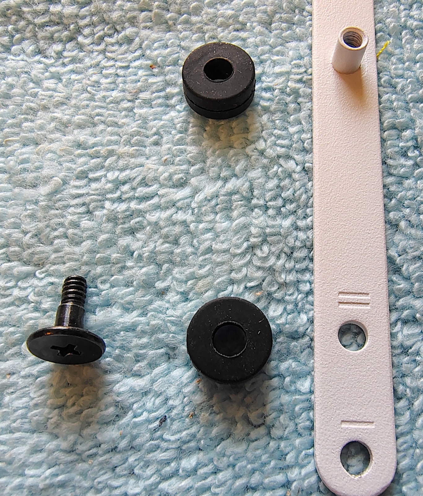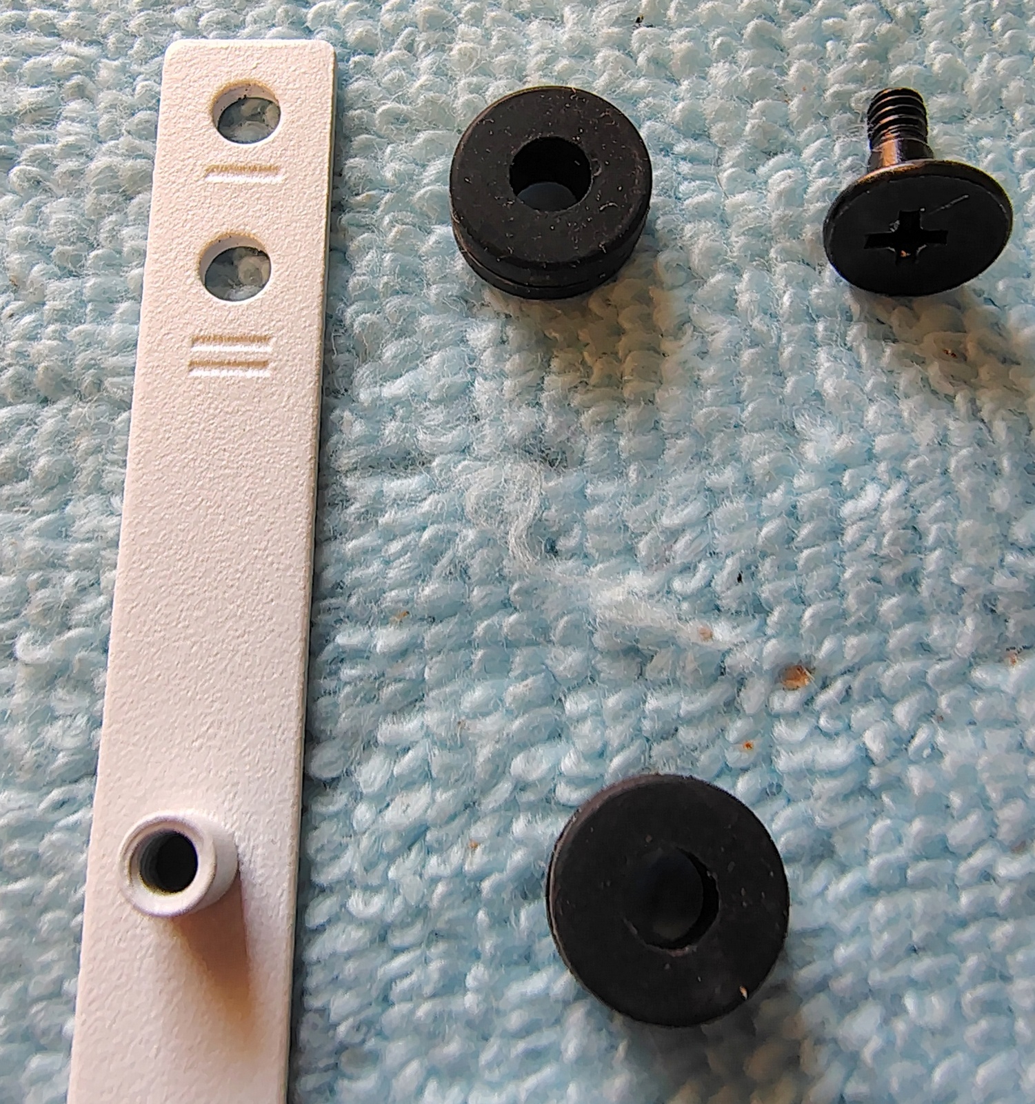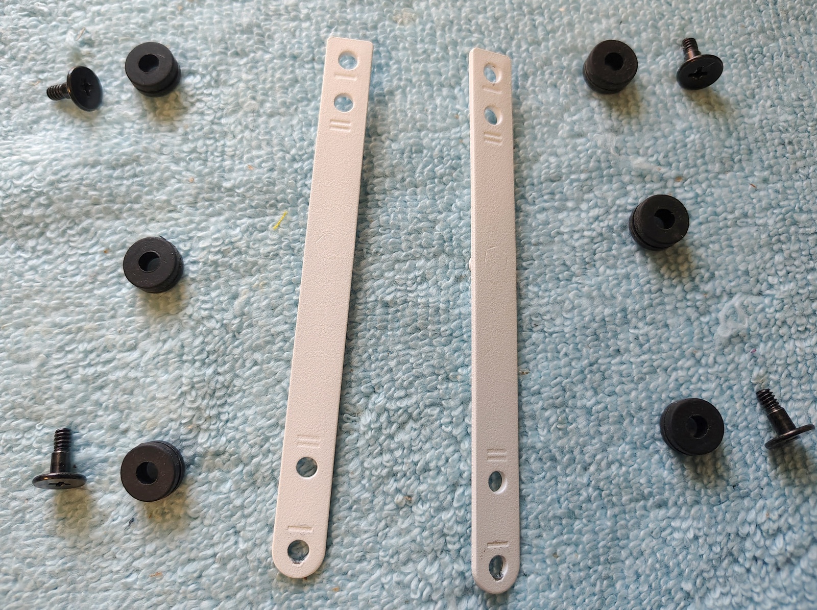 Up for sale is a set of two original metal steel mounting rails adapter for use with Fractal Design Node 804 cases. These rails are for mounting a large capacity ( > 6TB) hard drive into the case – it has a nub for the center hole and allows you to attach screws to the two holes on either end of the higher capacity drives. The 4 shouldered screws and the six rubber grommets are included. This set is enough for you to mount one drive into the Node 804 case. The last picture is from the manual and shows how to use ’em. This may fit other cases, but we’re not for certain – you should check with Fractal Design for compatibility with your case BEFORE you purchase this one.