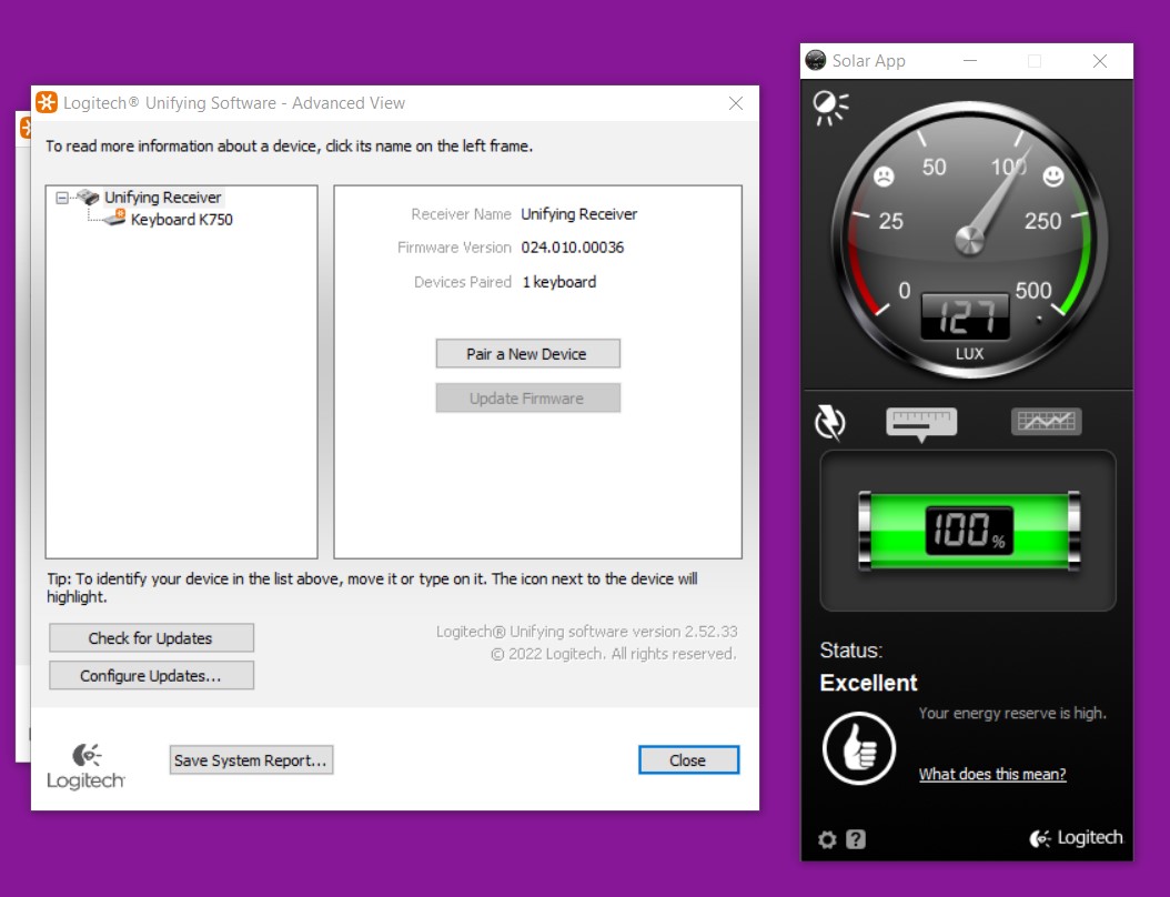 - Unifying USB wireless receiver – Firmware Version: 024.010.00036