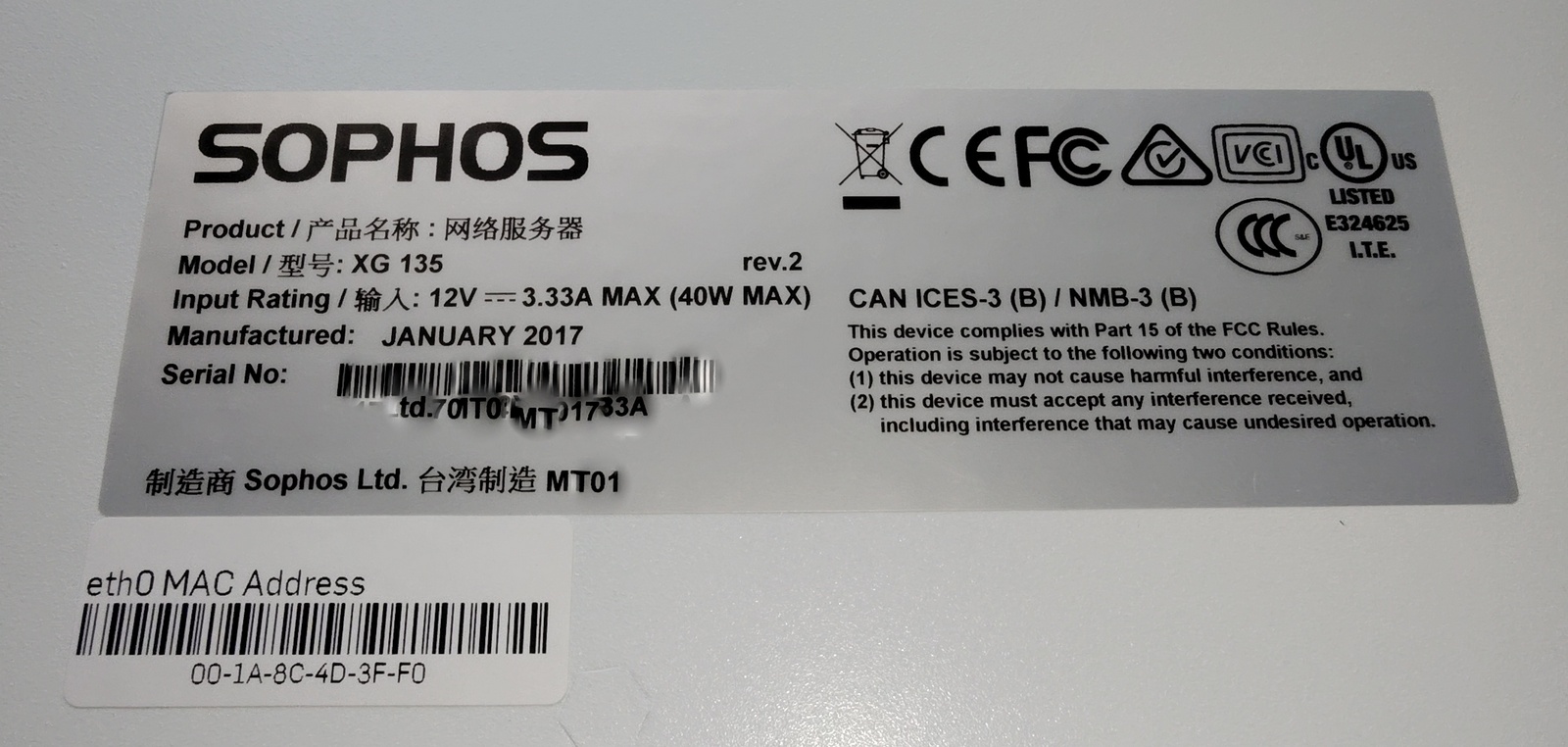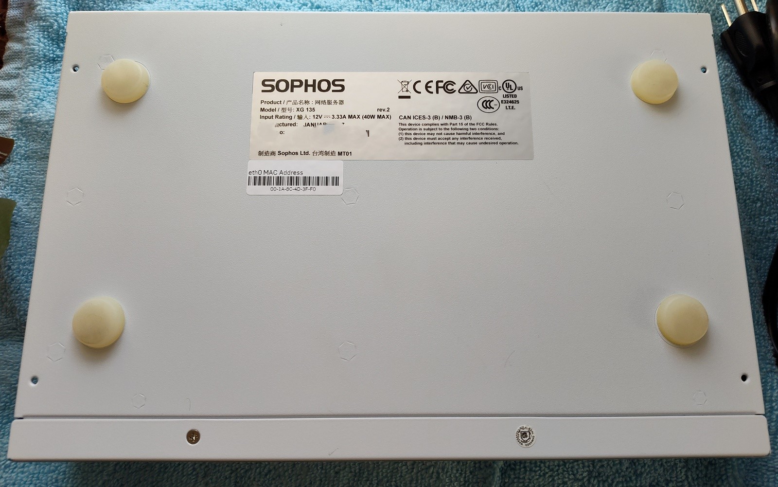 Up for sale is a good used Sophos XG 135 firewall. We put this one into service in March of 2017 and retired it in February of 2023. We have replaced it with a newer, faster firewall and now have this one left over and are just now (Winter 2024) getting around to erasing it, resetting it to the defaults and offering it for sale on the interwebs. Hope someone out there can put it to use! It has been reset to the defaults and is ready for you to configure as you like. We can transfer the serial number to your Sophos Central Account so you can add it to your Sophos Central – see picture! The warranty seal over one of the screws has been broken when the SSD was removed to securely erase it. The SSD was then reinstalled and Sophos Firewall version 20.0.0.222 was loaded onto the appliance which is now ready for you to setup as you like. Default admin port and IP address on the LAN port is 172.16.16.16:4444 over https.
