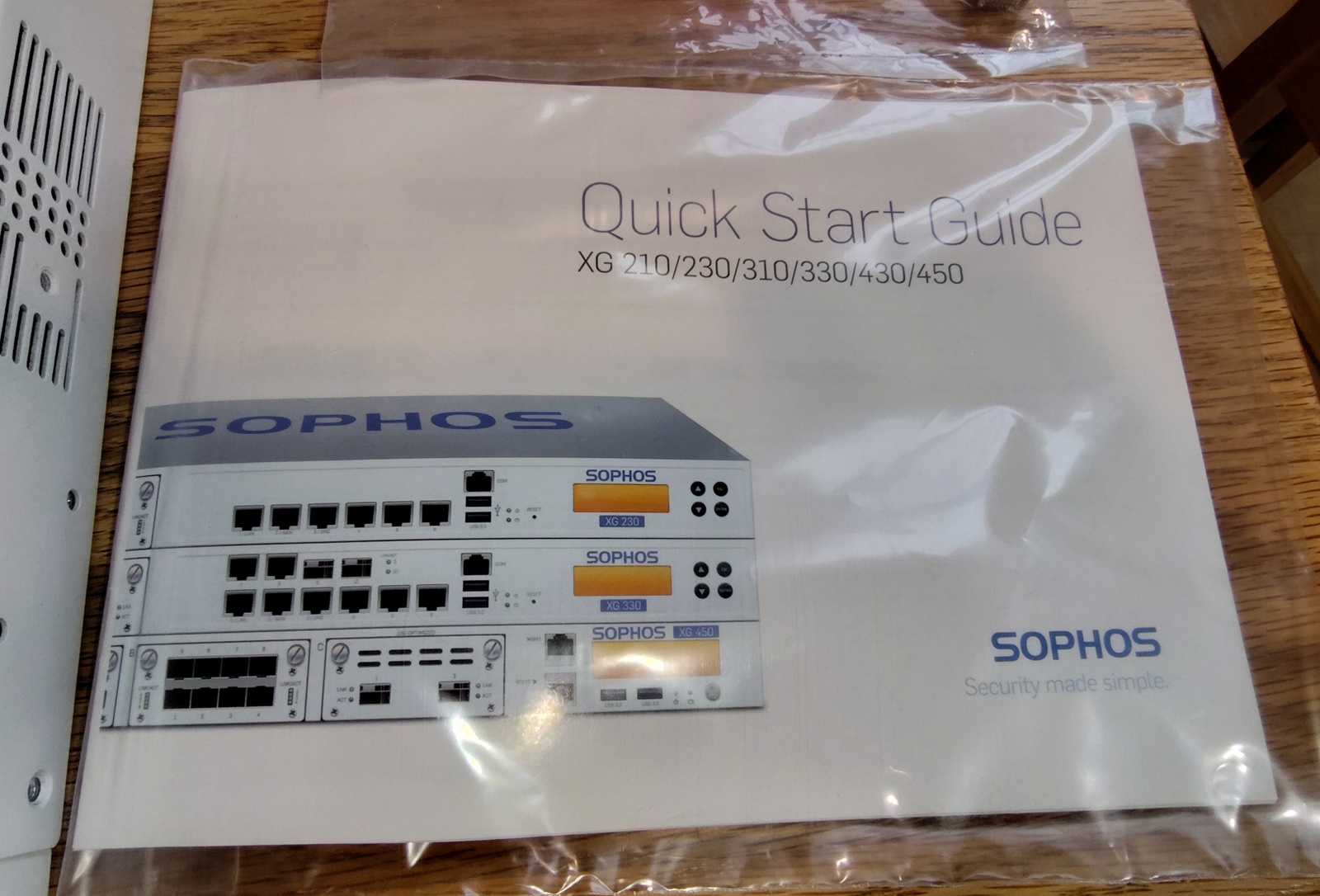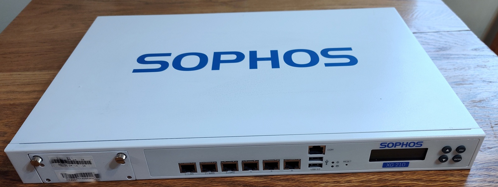 Up for sale is a good used Sophos XG 210 firewall. We put this one into service in February of 2017 and retired it in May of 2023. We have replaced it with a newer, faster firewall and now have this one left over and are just now (Fall 2024) getting around to erasing it, resetting it to the defaults and offering it for sale on the interwebs. Hope someone out there can put it to use! It has been reset to the defaults and is ready for you to configure as you like. The warranty seal over one of the screws has been broken when the SSD was removed to securely erase it. The SSD was then reinstalled and Sophos Firewall version 20.0.0.222 was loaded onto the appliance which is now ready for you to setup as you like. Default admin port and IP address on the LAN port is 172.16.16.16:4444 over https.