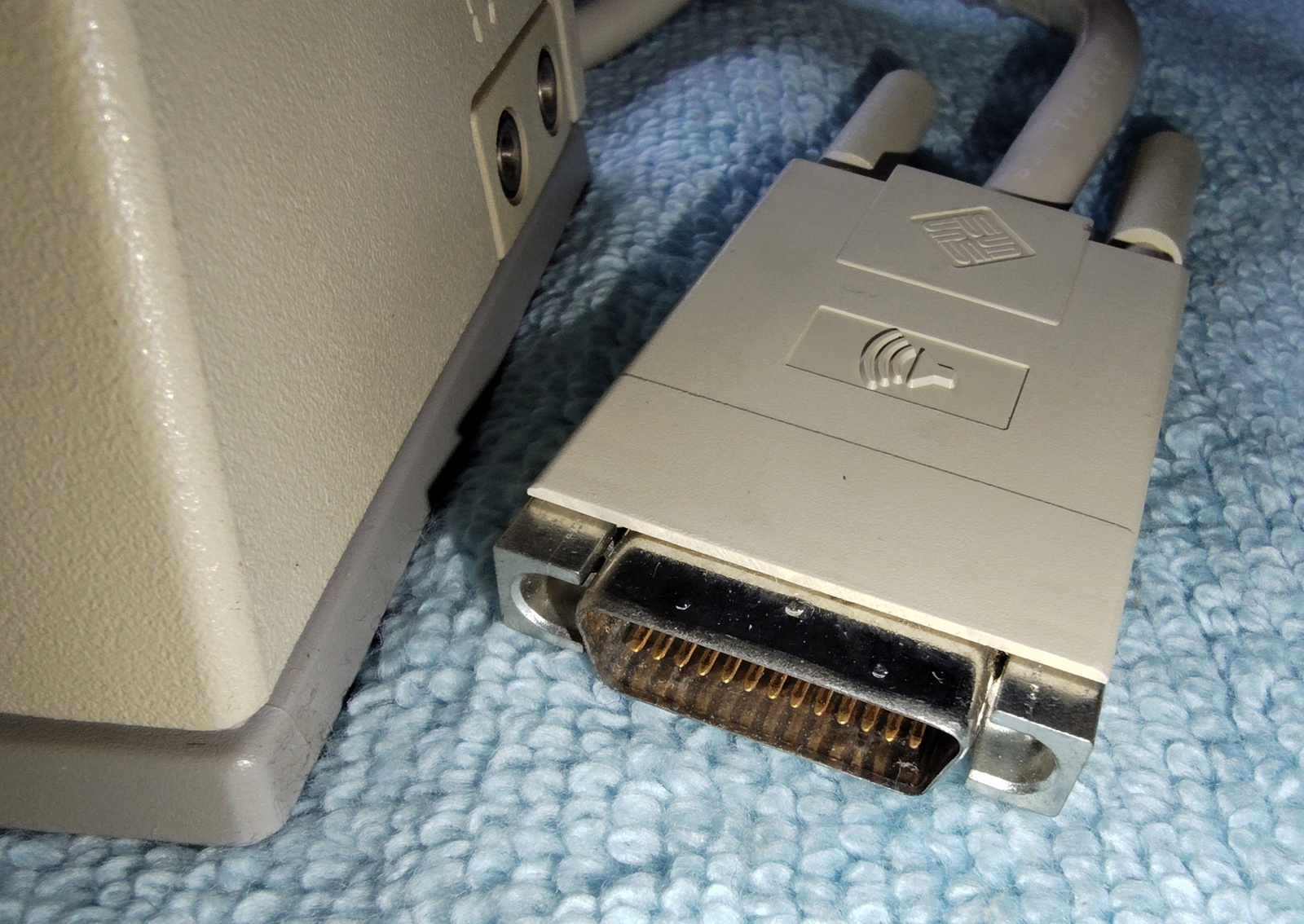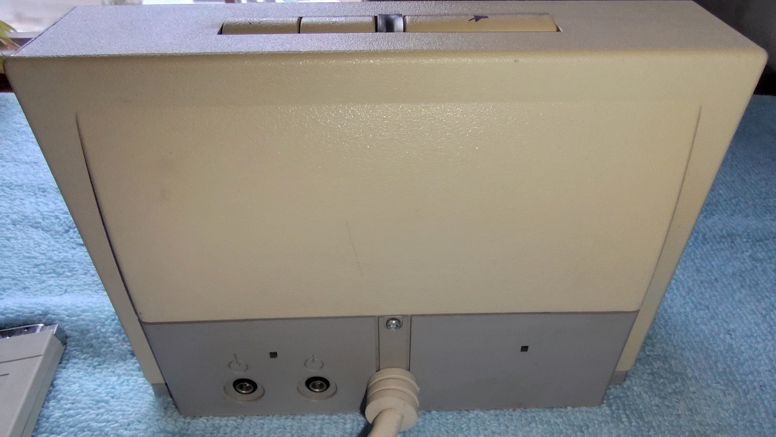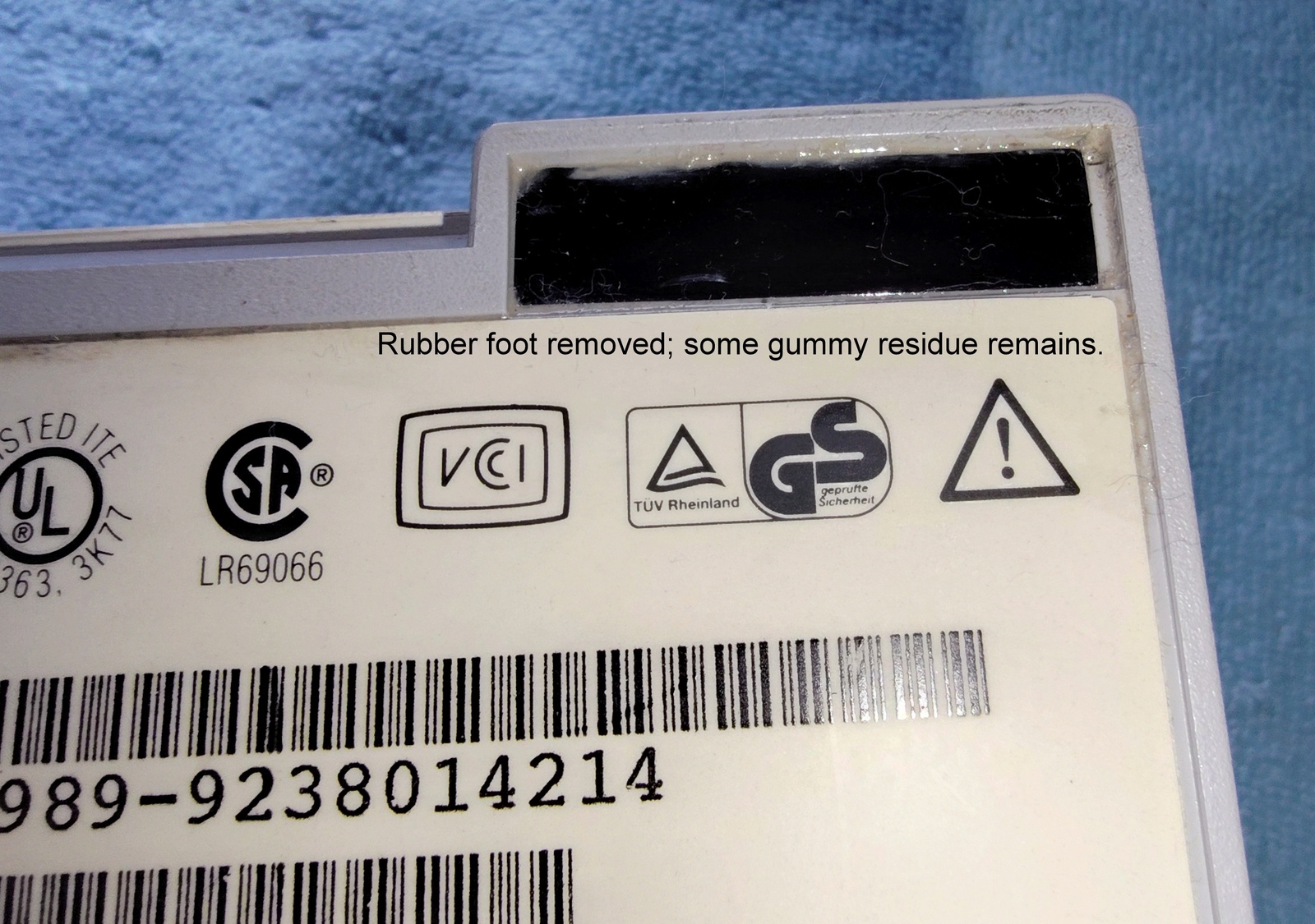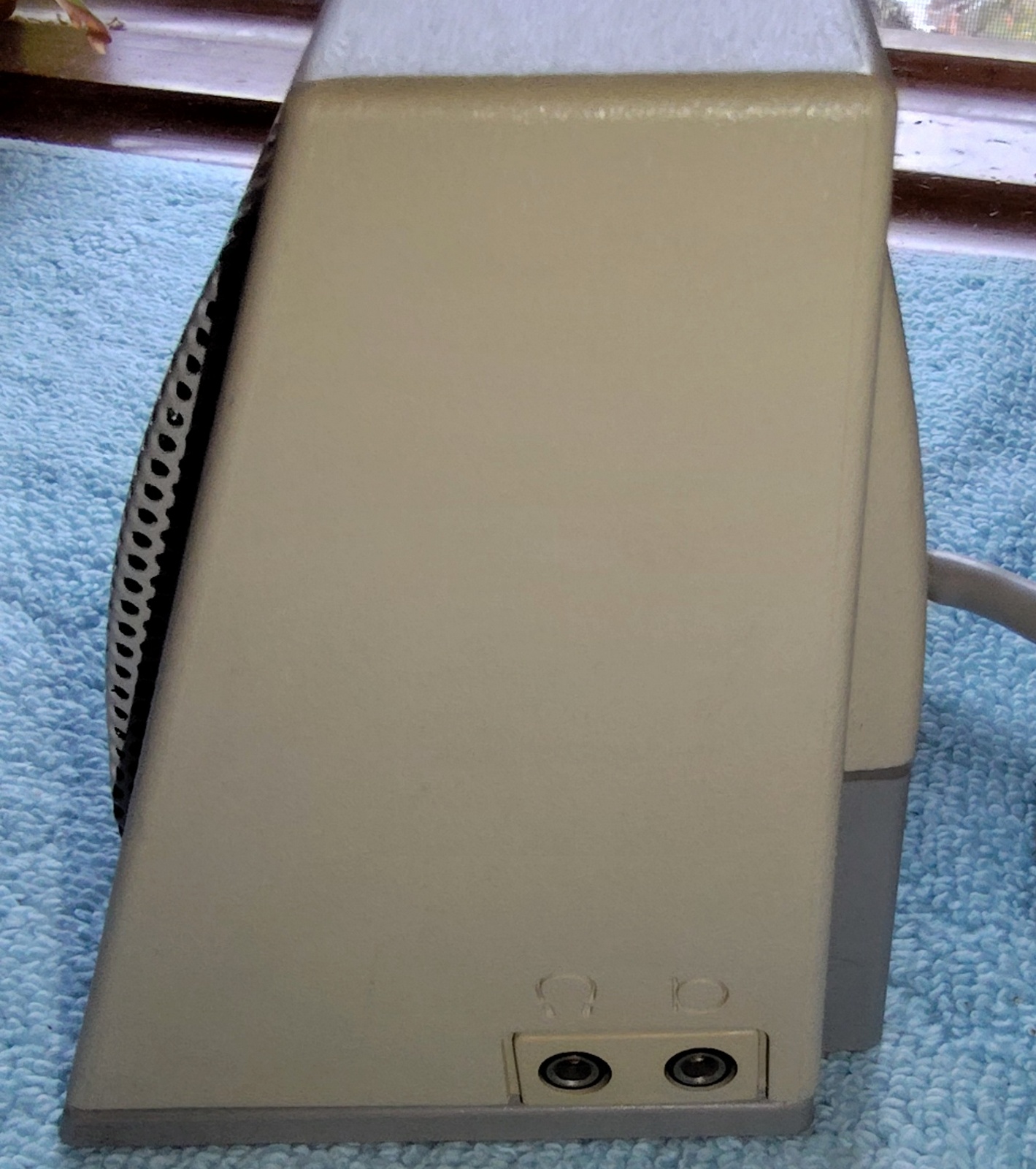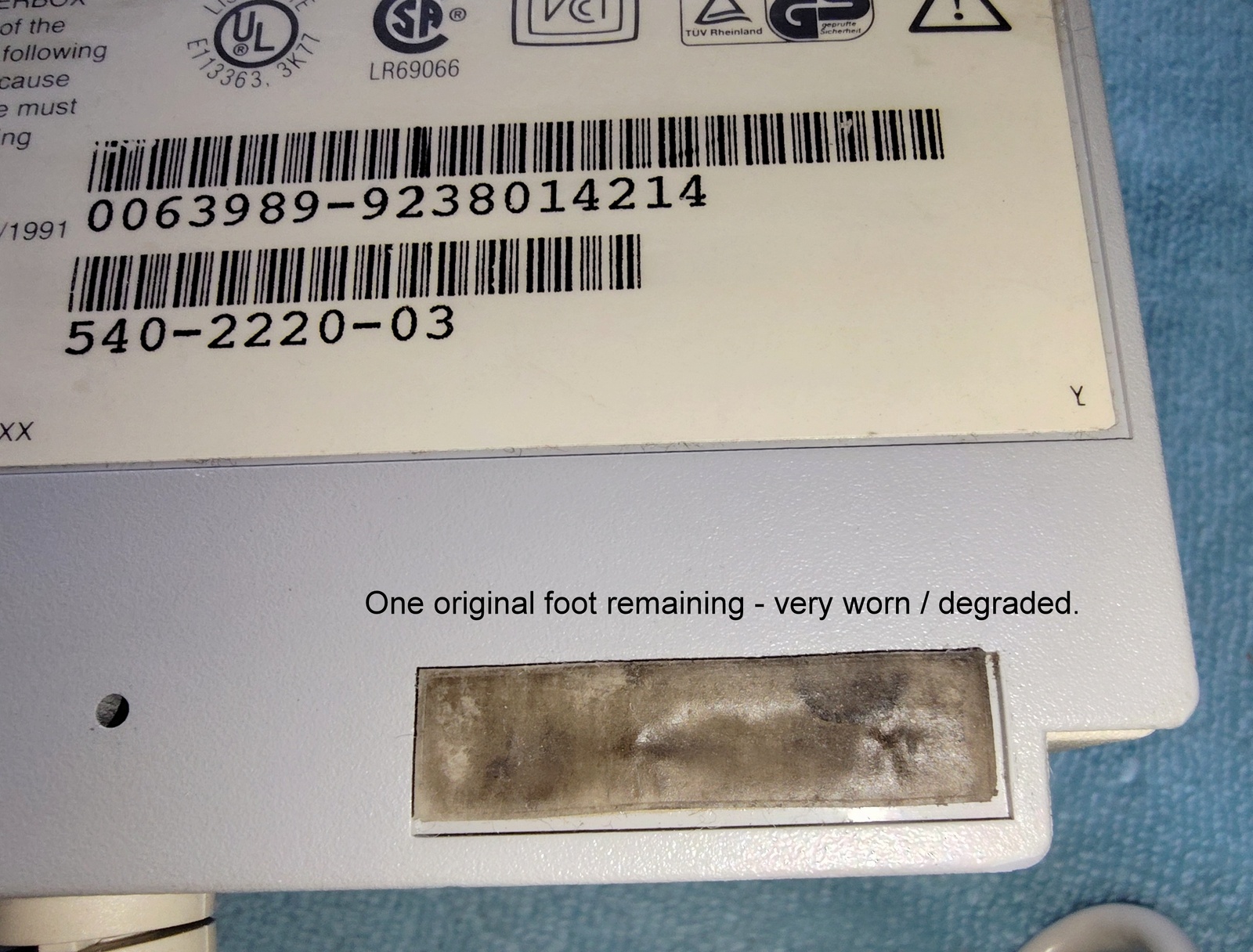Up for sale is a Sun Microsystems Speaker Box, 540-2220-03. The part number 530-1866-02 Rev. 50 0843-9238 is on a sticker on the cable near the plug. This would have been used with an older Sun Sparc system from the 1990s. This is sold as-is for a collectible only since we have no way to test it and it’s decades old or more. It is in good physical condition with minor scrapes / scratches / smudges, etc. Three of the feet have been removed due to having disintegrated into a gummy mess – LOOK AT THE PICTURES! The remaining original foot is pretty degraded, but not a gummy mess – YET! The next owner of this should plan on putting new feet on it. The buttons all click OK – SEE PICTURES! There is a slight inconsistency in the yellowing of the plastic on one side where there used to be a sticker – LOOK AT THE PICTURES!