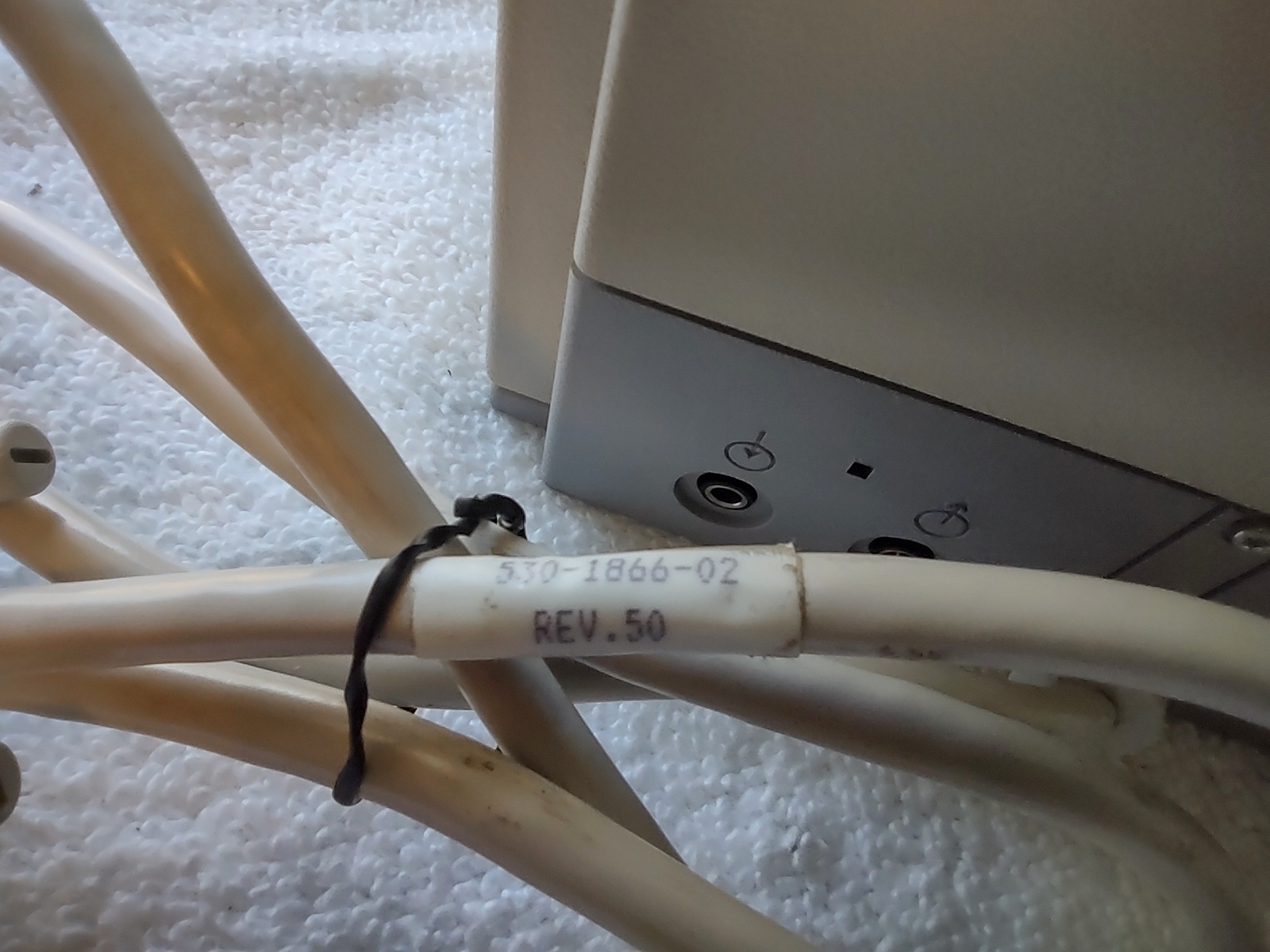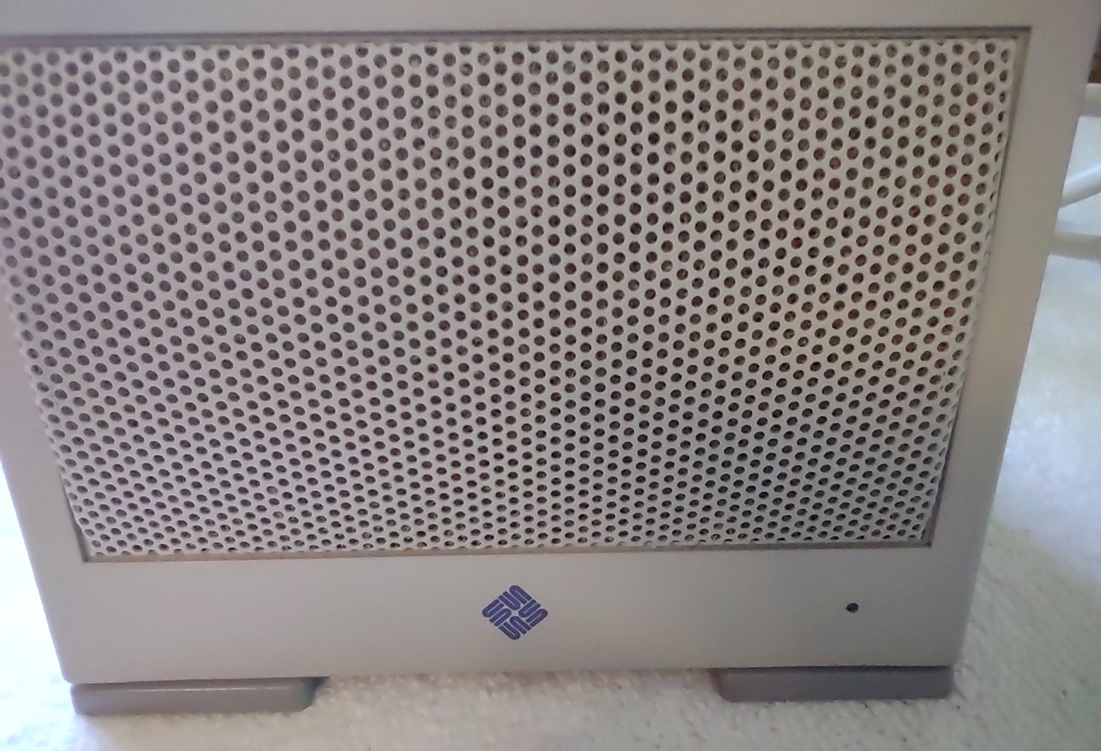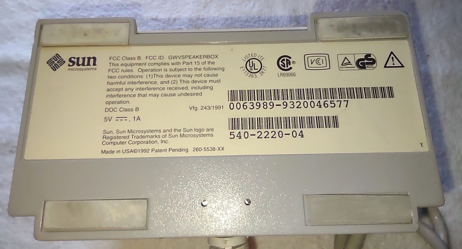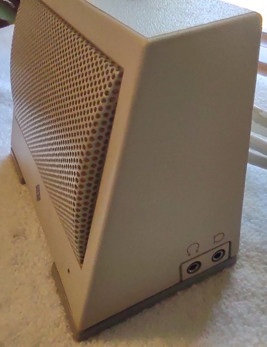 Up for sale is a Sun Microsystems Speaker Box, 540-2220-04. The part number 530-1866-02 Rev. 50 0843-9317 is on a sticker on the cable near the plug. This would have been used with an older Sun Sparc system from the 1990s. This is sold as-is for a collectible only since we have no way to test it and it’s decades old or more. But it is clean and appears to have had little use. The feet are starting to show a little bit of discoloration, but are not gummy like other examples of this part we’ve had – SEE PICTURES!