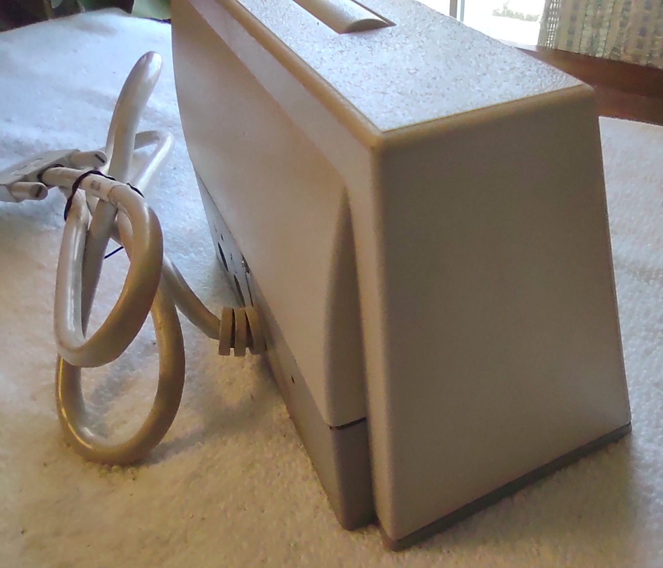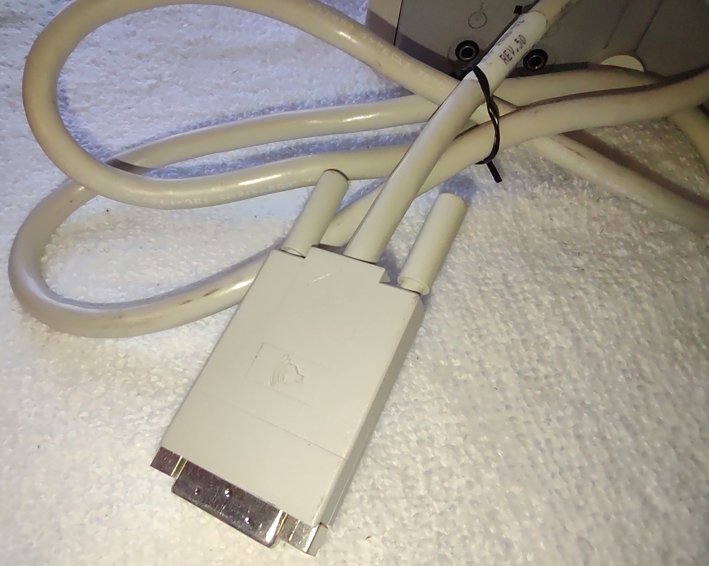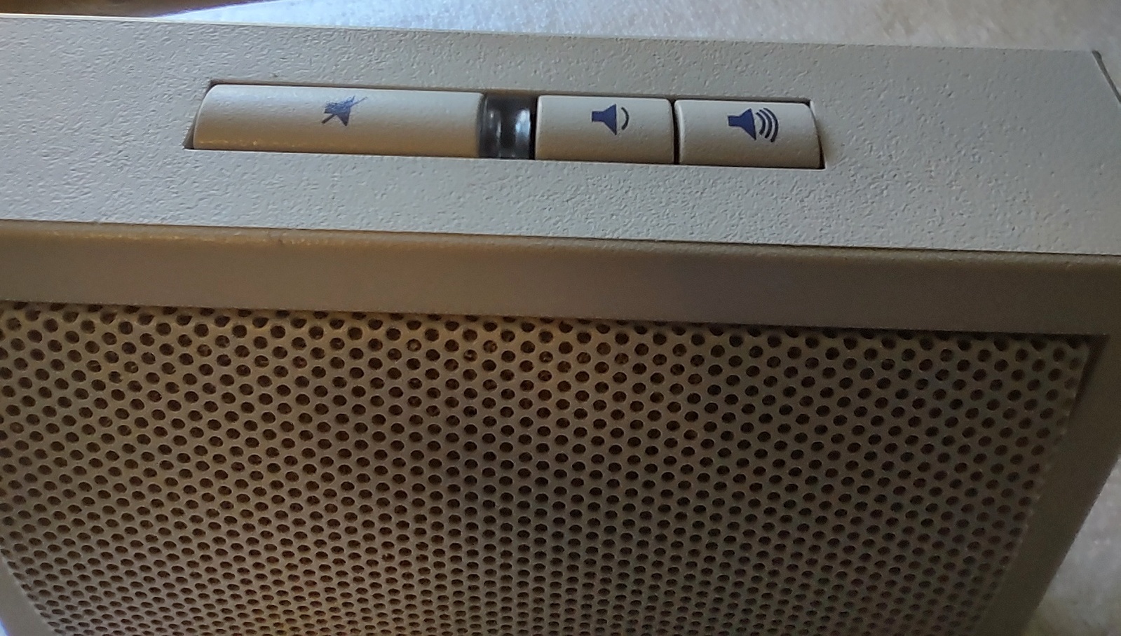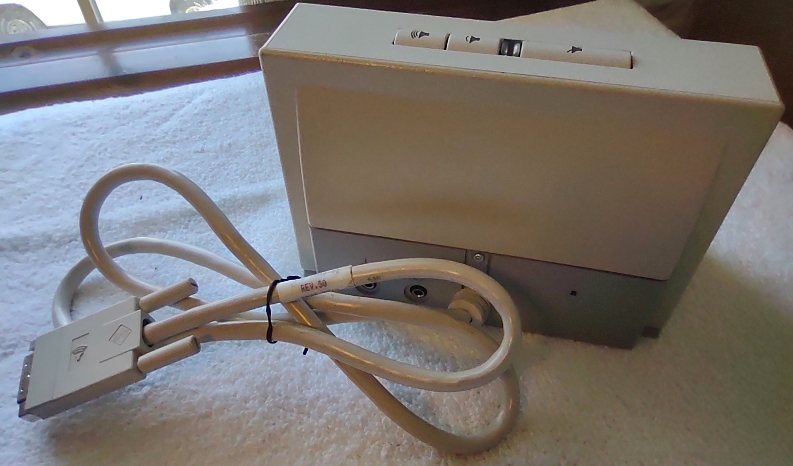 Up for sale is a Sun Microsystems Speaker Box, 540-2220-04. The part number 530-1866-02 Rev. 50 0843-9317 is on a sticker on the cable near the plug. This would have been used with an older Sun Sparc system from the 1990s. This is sold as-is for a collectible only since we have no way to test it and it’s decades old or more. But it is clean and appears to have had little use. The feet are starting to show a little bit of discoloration, but are not gummy like other examples of this part we’ve had – SEE PICTURES!