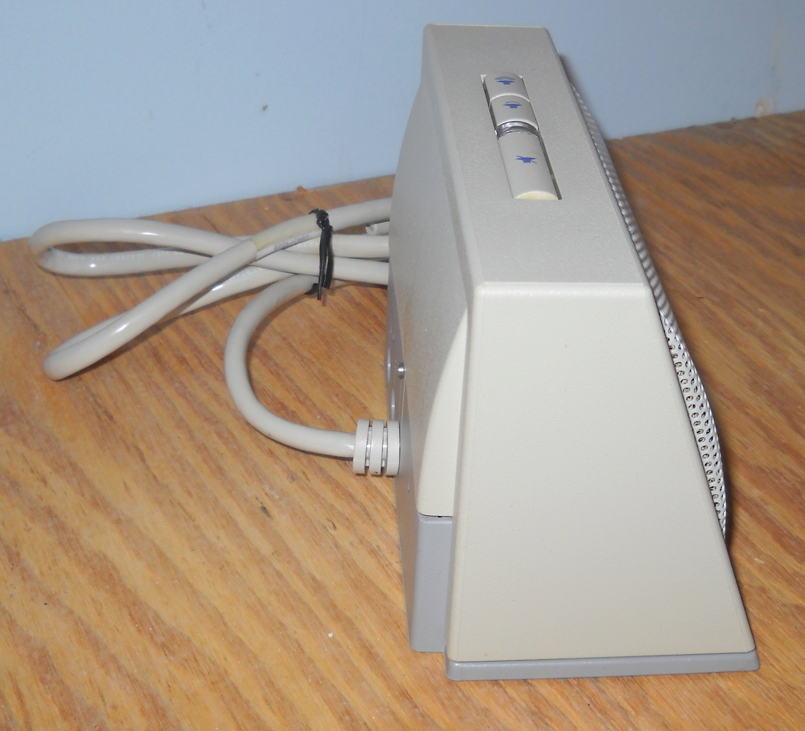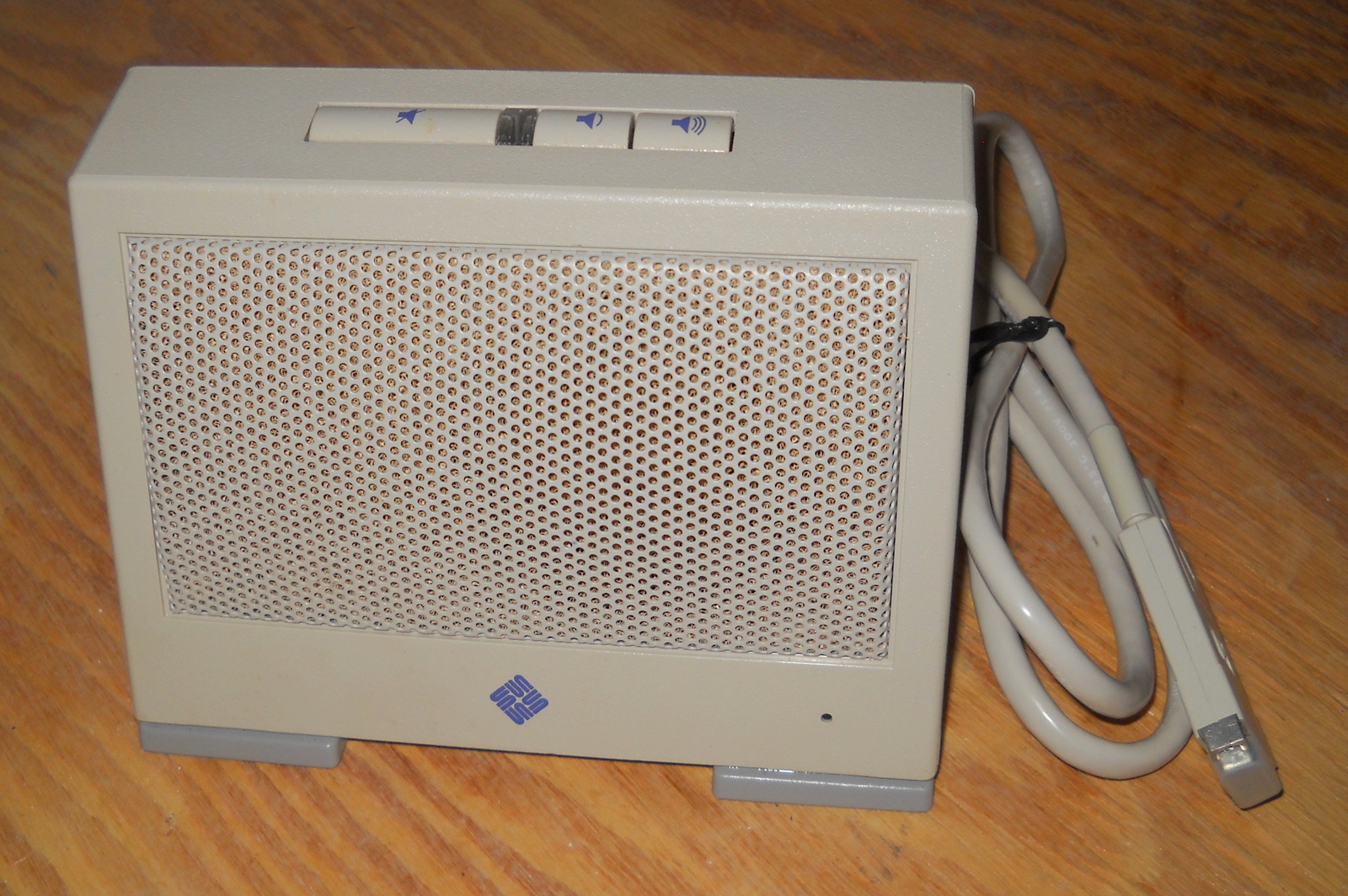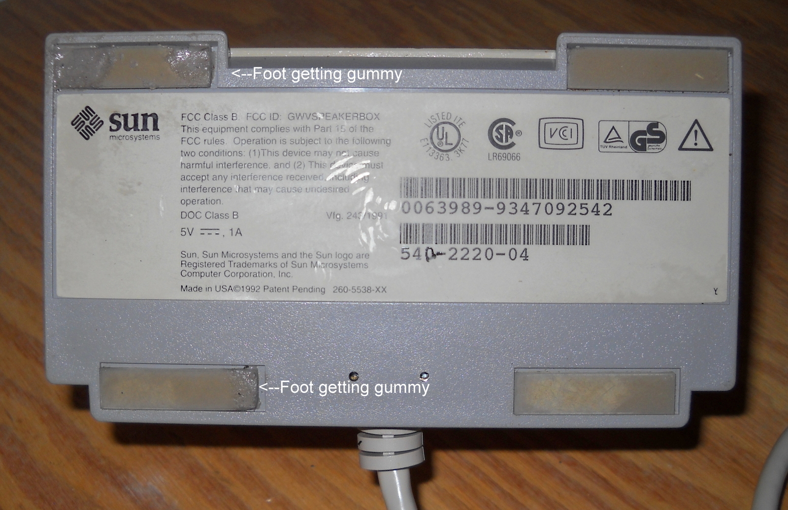 Up for sale is a Sun Microsystems Speaker Box, 540-2220-04. This would have been used with an older Sun Sparc system from the 1990s. This is sold as-is for a collectible only since we have no way to test it and it’s decades old or more. But it is clean and appears to have never been used as the plastic cover over the connector is still there. Two of the feet are starting to get a little bit gummy – SEE PICTURES!