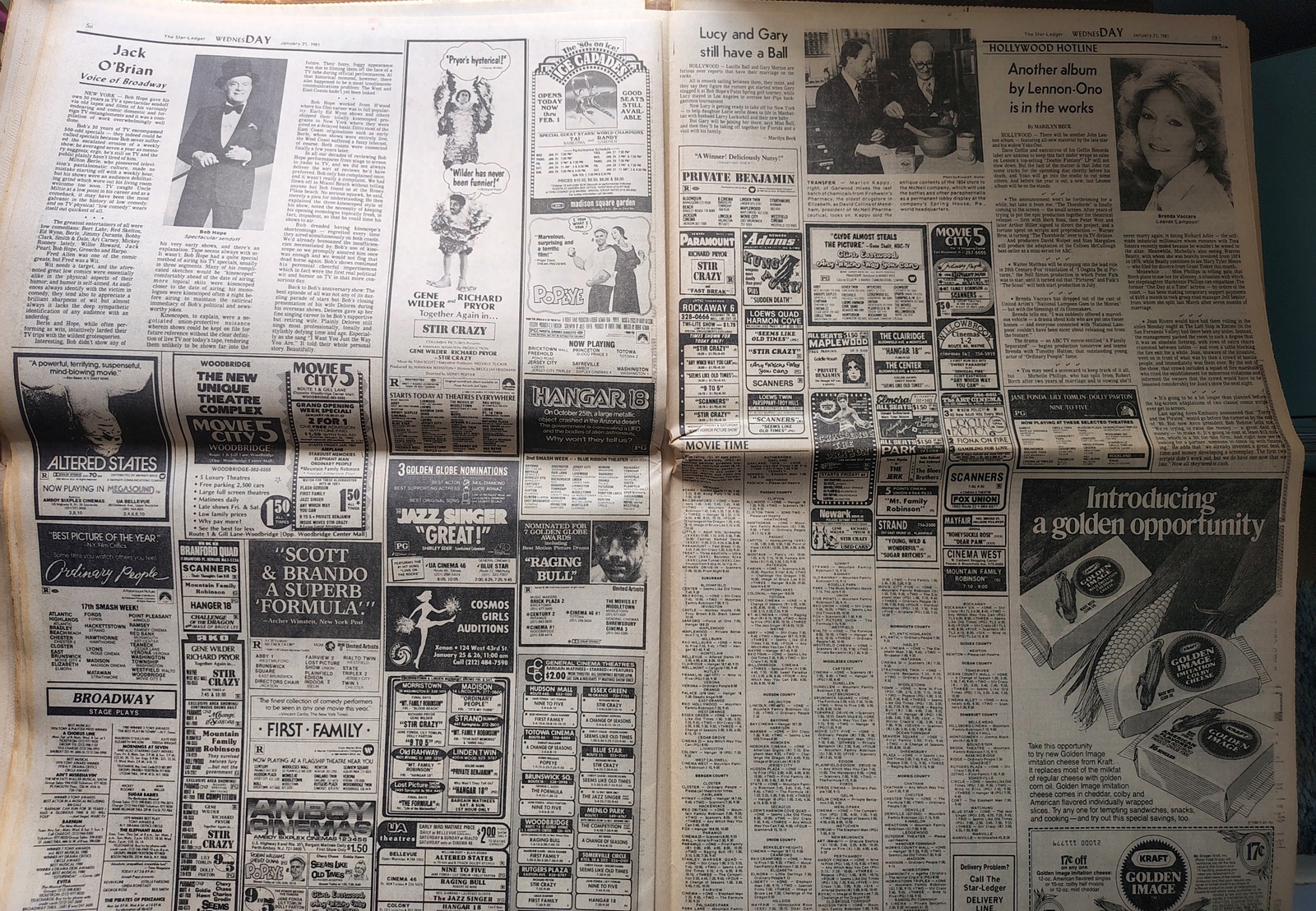 - Movie ads include: Stir Crazy, Private Benjamin, Popeye (With Robin Williams), and more!