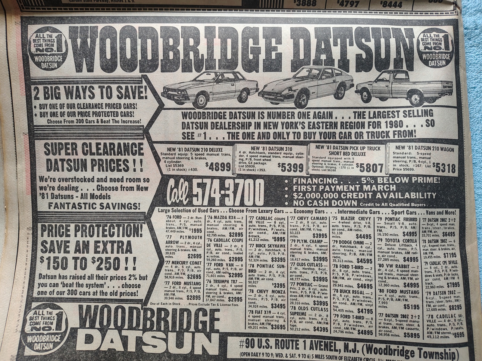 - or, you can get a new 1981 Datsun 310 for only $5399 at Woodbridge Datsun.