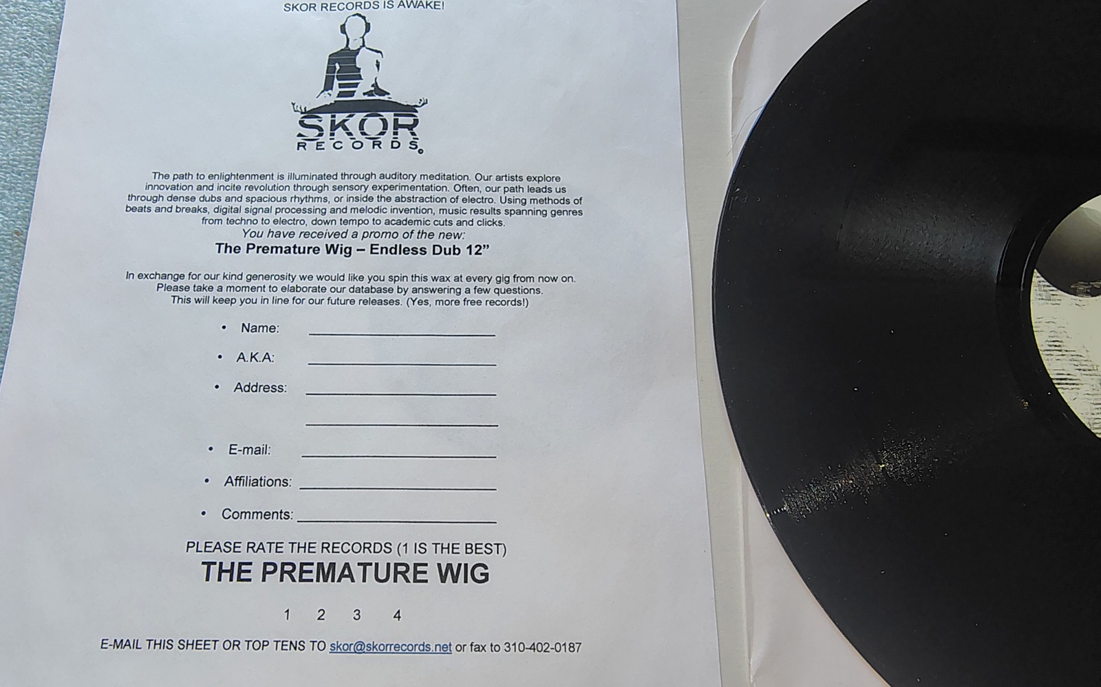 original Skor Records promo insert included with the record.