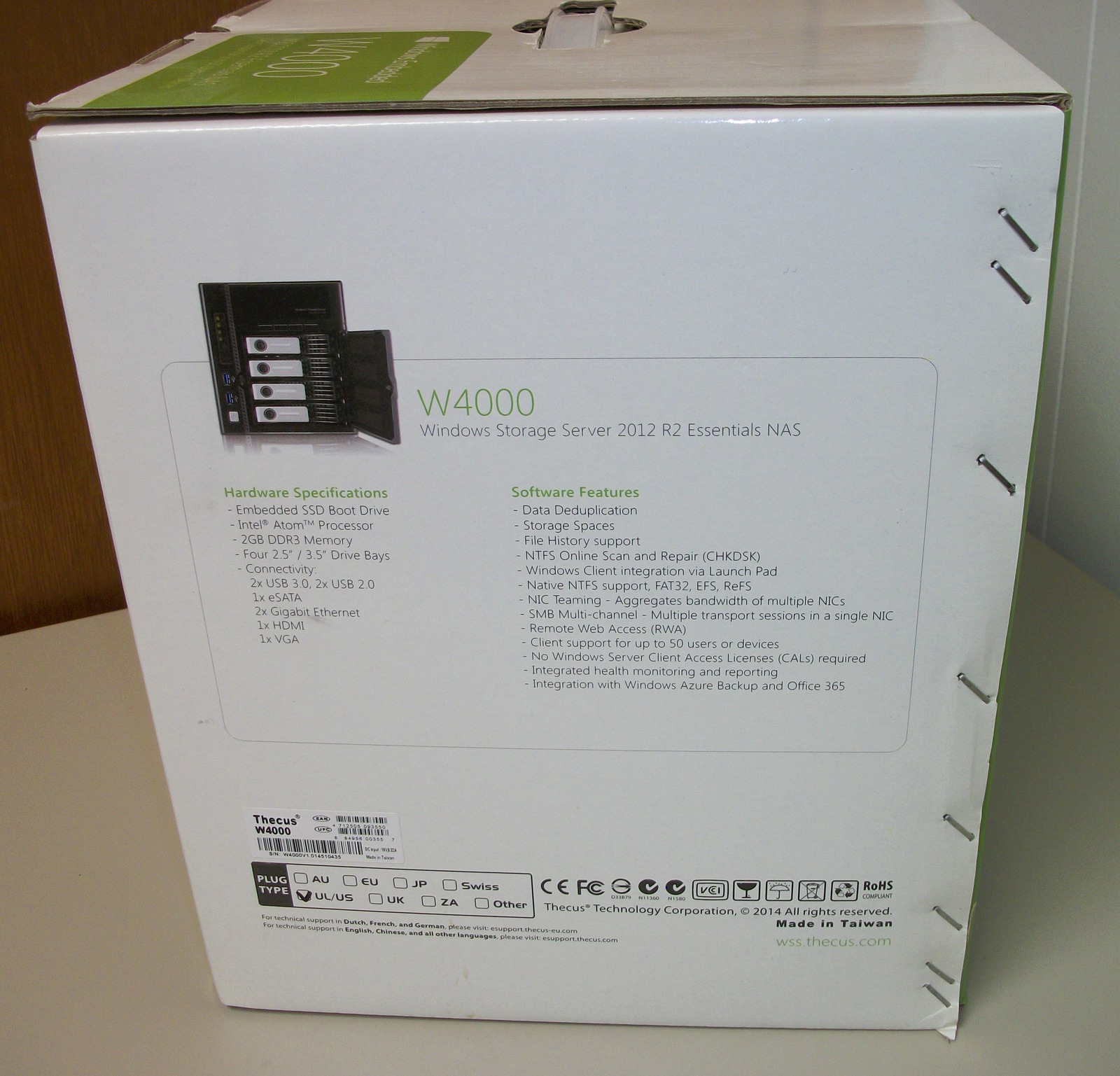 Up for sale is a Thecus W4000 Network Attached Storage. This NAS was purchased as a spare back in 2015 and has sat on the shelf – it is now being offered on the internet in hopes that someone can use it. The hard drives are NOT included. It is in new, old stock condition. We had originally purchased it as a spare for our other NAS unit, but never needed the spare. It comes with 2GB of RAM, but we recommend you upgrade it to 4GB as it is pretty slow with just the included 2GB of RAM. These are really interesting because they run Windows Server Essentials with Active Directory support, Microsoft Storage Spaces, Windows Client Integration (with backup), Remote Web Access, and supports up to 50 users or devices.