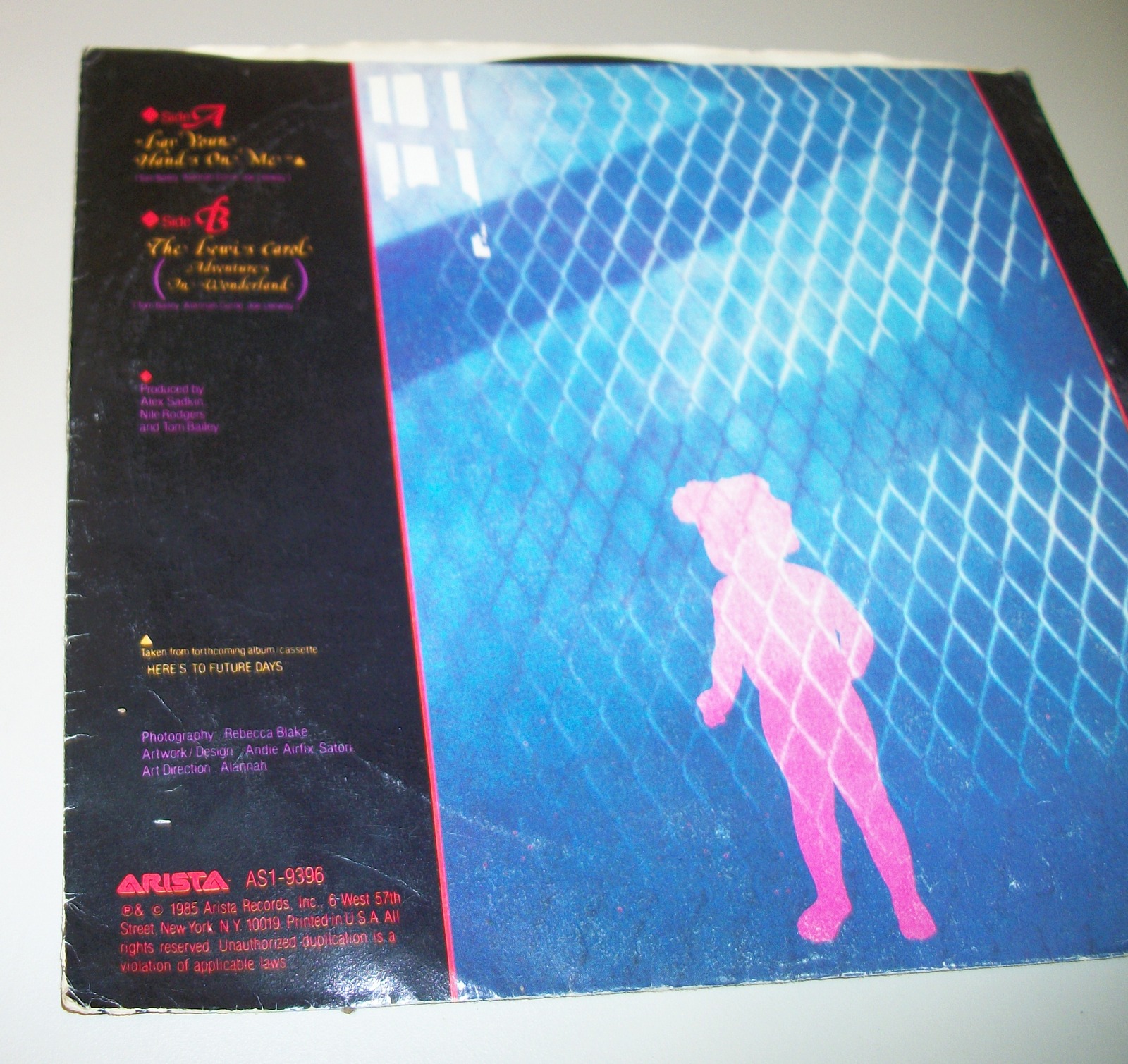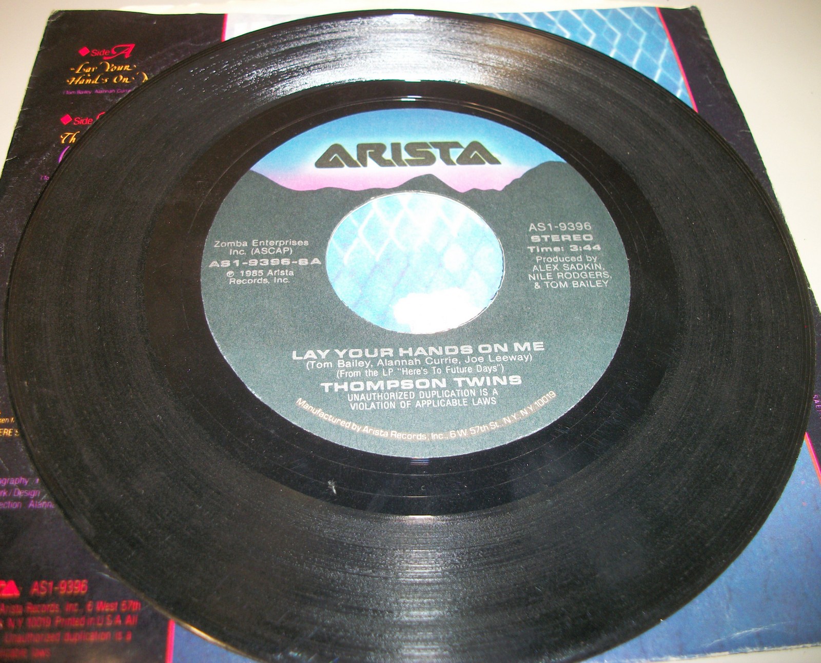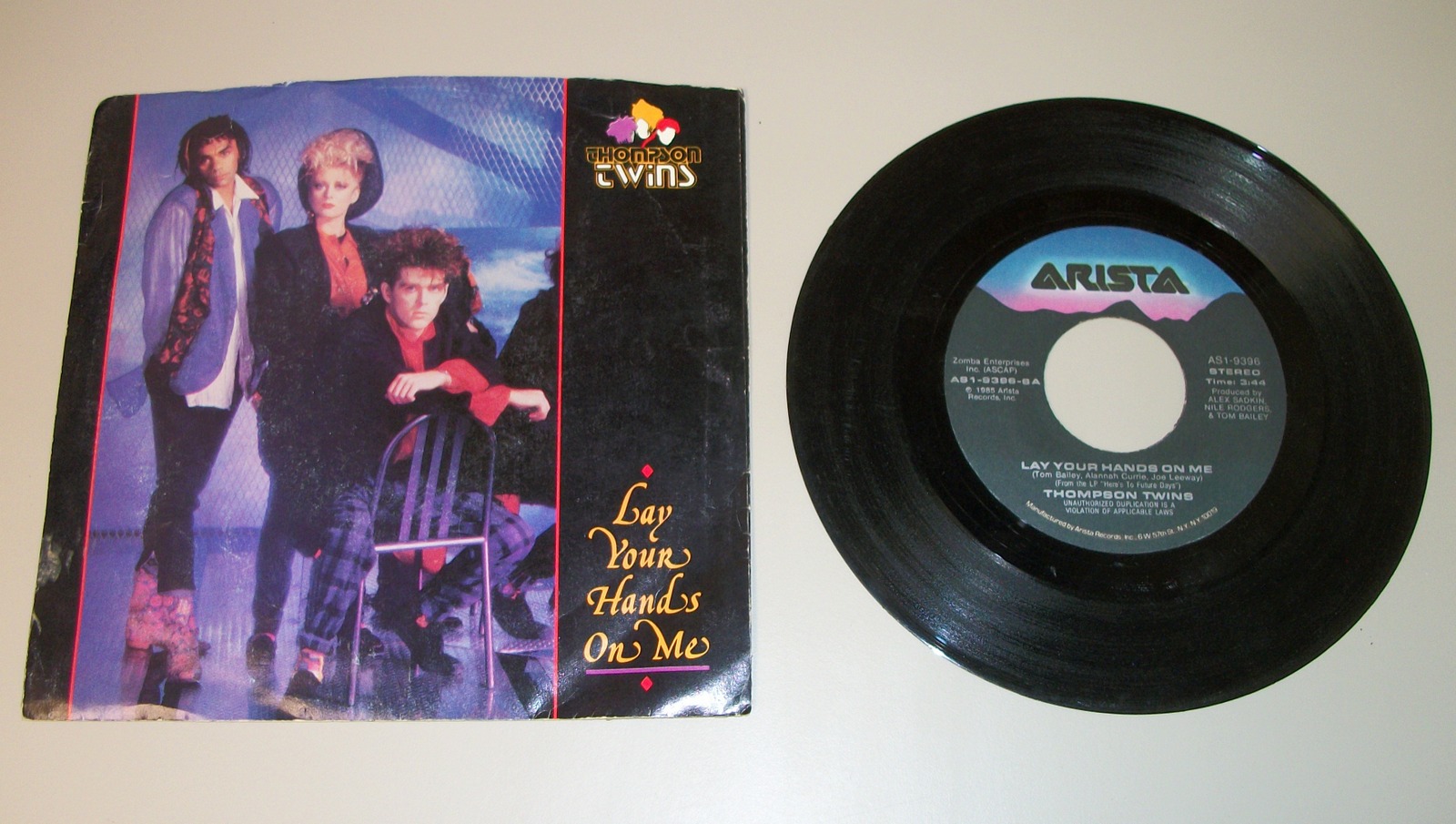 Up for sale is a 45 of the single Lay Your Hands On Me by Thompson Twins from 1985 on 7″ vinyl. LOOK AT THE PICTURES! Used condition, some light scratches, wear around the edges and light creases. This is in pretty good shape for a decades old record.