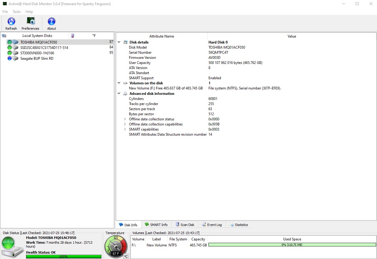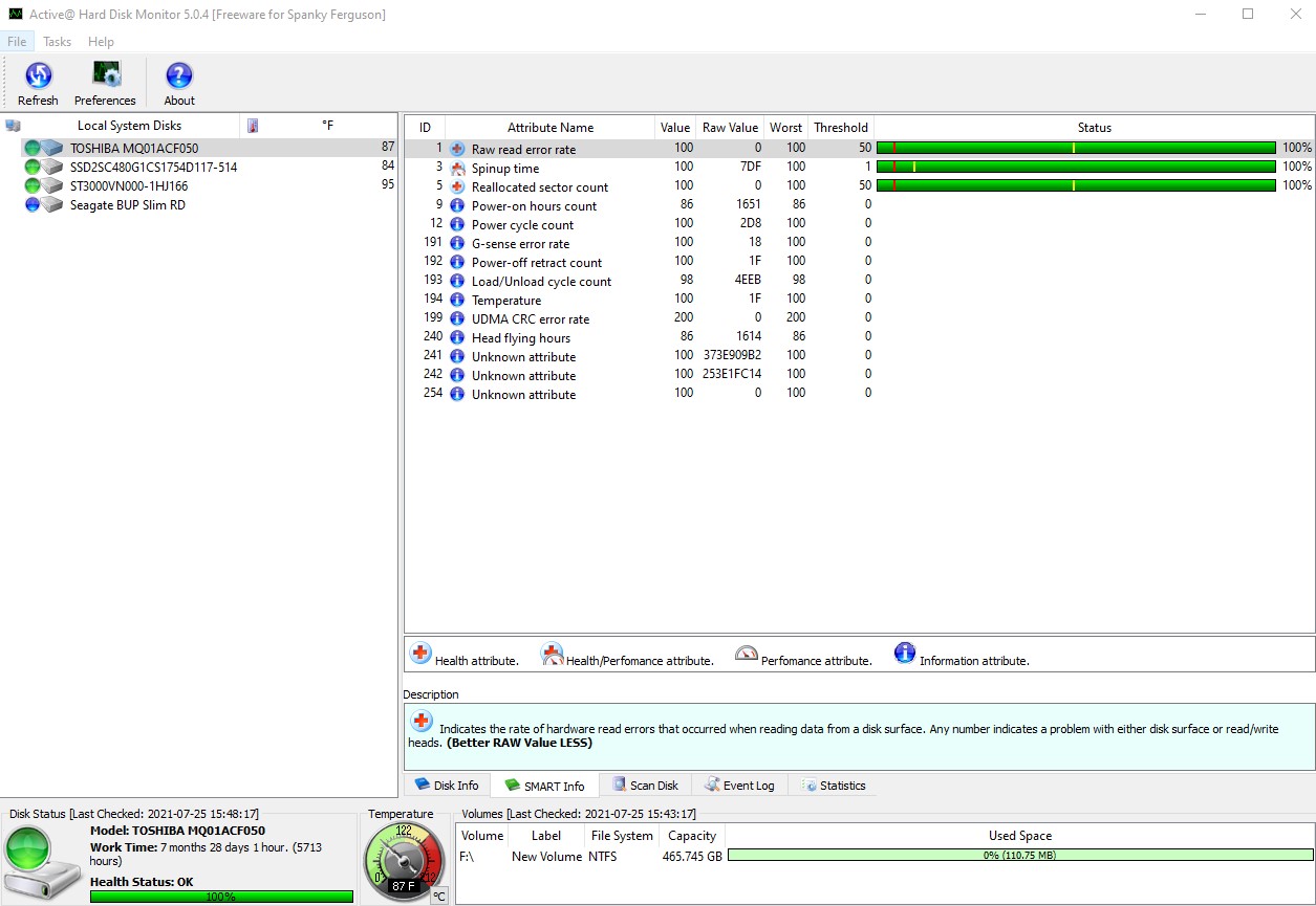 - 5713 Hours (7 Months, 28 Days, 1 Hour) – According to Active Hard Disk Monitor 5.0.4