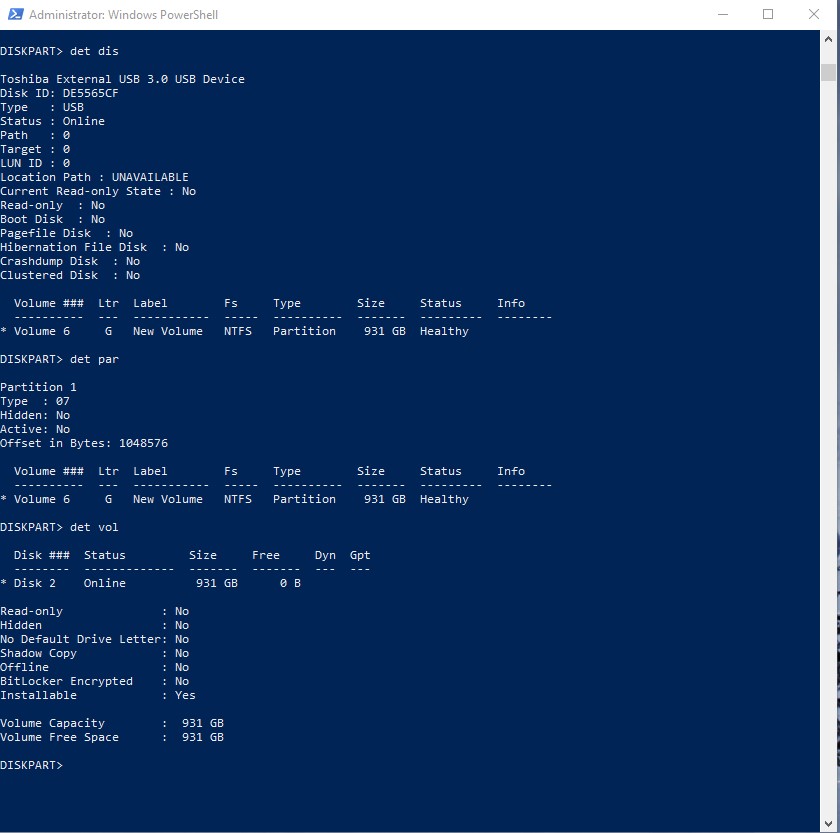 Up for sale is a used 1TB external (3.5″) hard drive. This was used as a destination for backups for about a decade and has now been retired. We have now upgraded to a newer, larger capacity backup drive and have this one left over. It has been securely erased and it passed Toshiba Storage Diagnostic Tool’s long test – SEE PICTURE. This hard drive is in good, used condition and what you see in the pictures is what you get. This drive has one partition with one volume which has been formatted with NTFS.