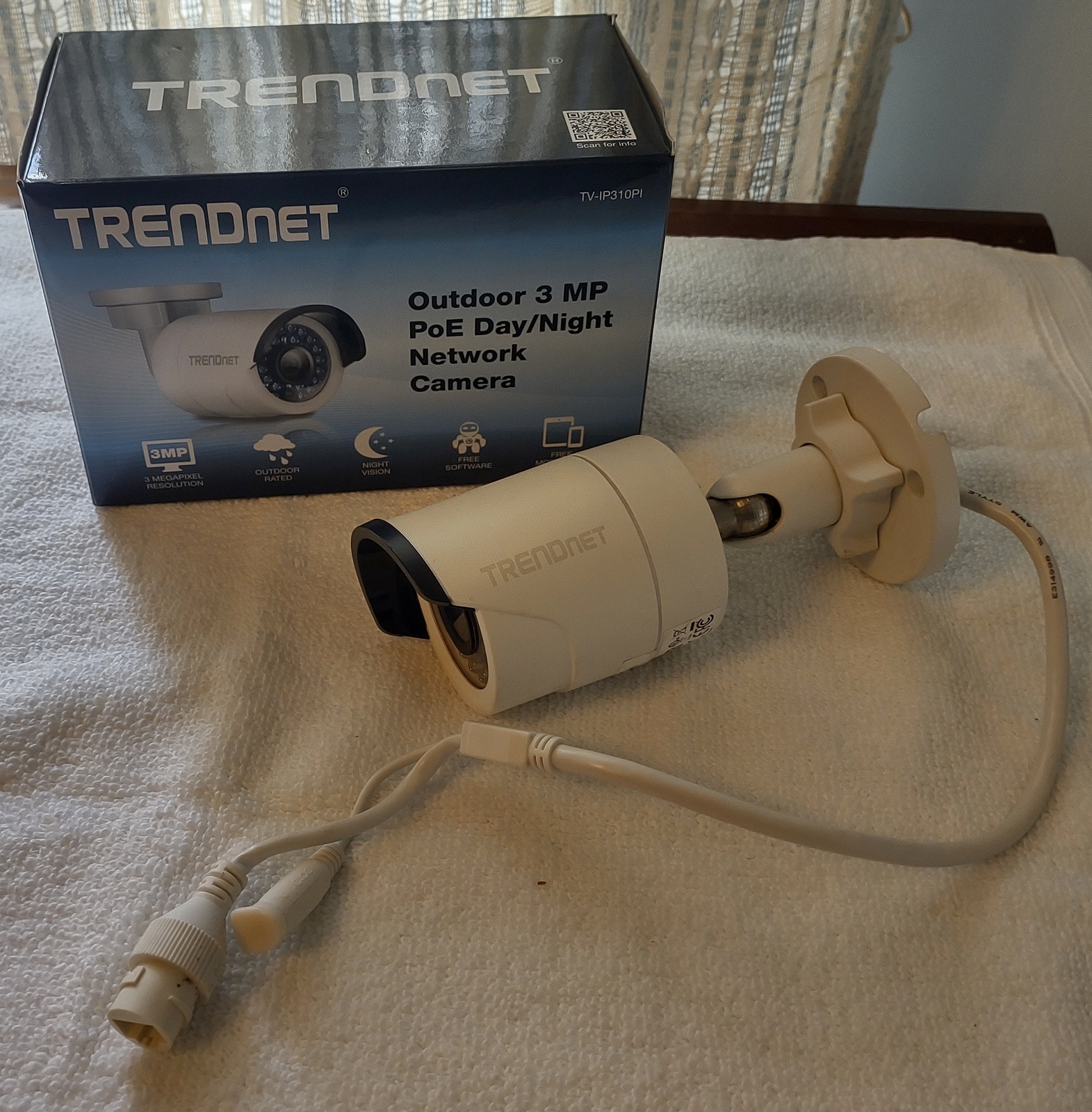Up for sale is a good used TrendNet TV-IP310PI Outdoor IP PoE Internet Camera. Hardware version 1.0R. We put this into service in April of 2016 and it has been a pretty good camera. However, we recently upgraded to Windows 11 which no longer includes Internet Explorer. In order to view this camera in the browser, it required an Active-X control to be installed into Internet Explorer. We were able to get it working in Microsoft Edge’s Internet Explorer mode on Windows 11, but Microsoft makes it awkward and constantly nags you to not use Internet Explorer mode. So, we replaced this camera with a more modern camera (Which we use with Firefox) and have this one left over. Hope someone out there on the internet can put it to use!