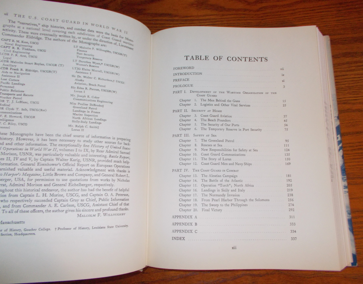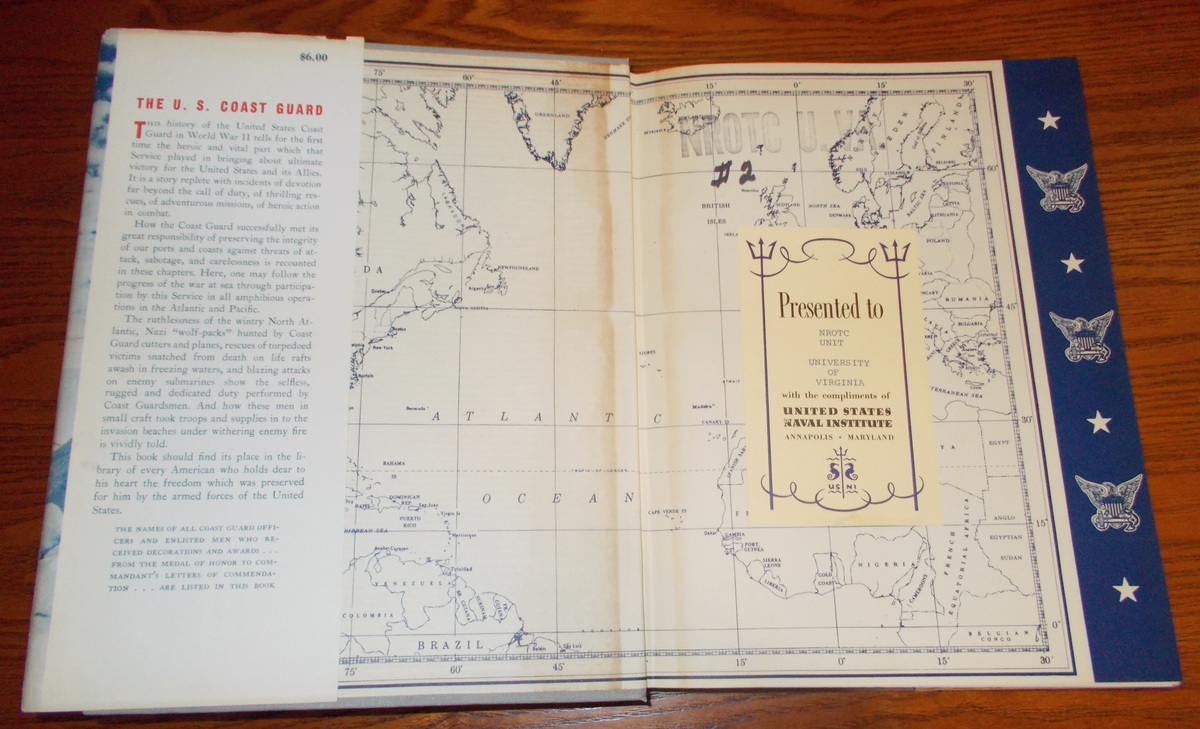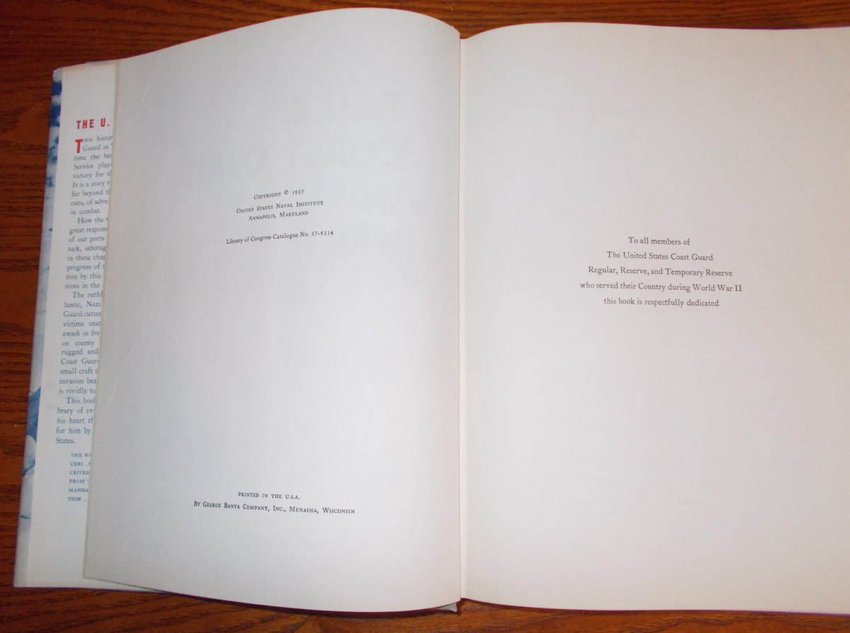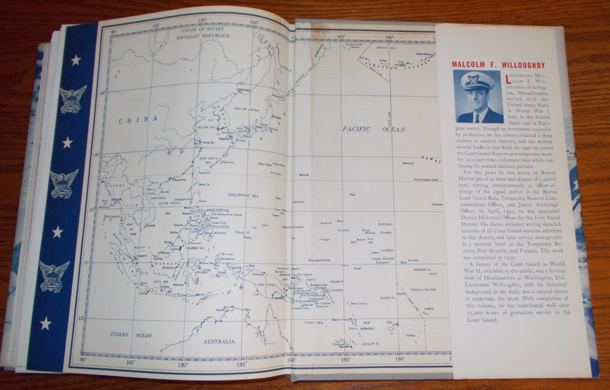 This is a hardcover book with dust cover: U.S. Coast Guard in World War II by Malcolm Willoughby. A Naval Institute Publication. This is in good used, ex-library condition. This was purchased several years ago as surplus from the University of Virginia. The dust cover has some wear around the edges and ‘NROTC U.VA.’ is stamped on the sides. Library of Congress Catalog No. 57-9314 Examine the pictures BEFORE you make your decision to purchase this book! 1st Printing – 1957.