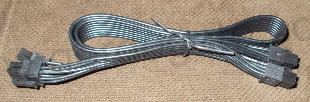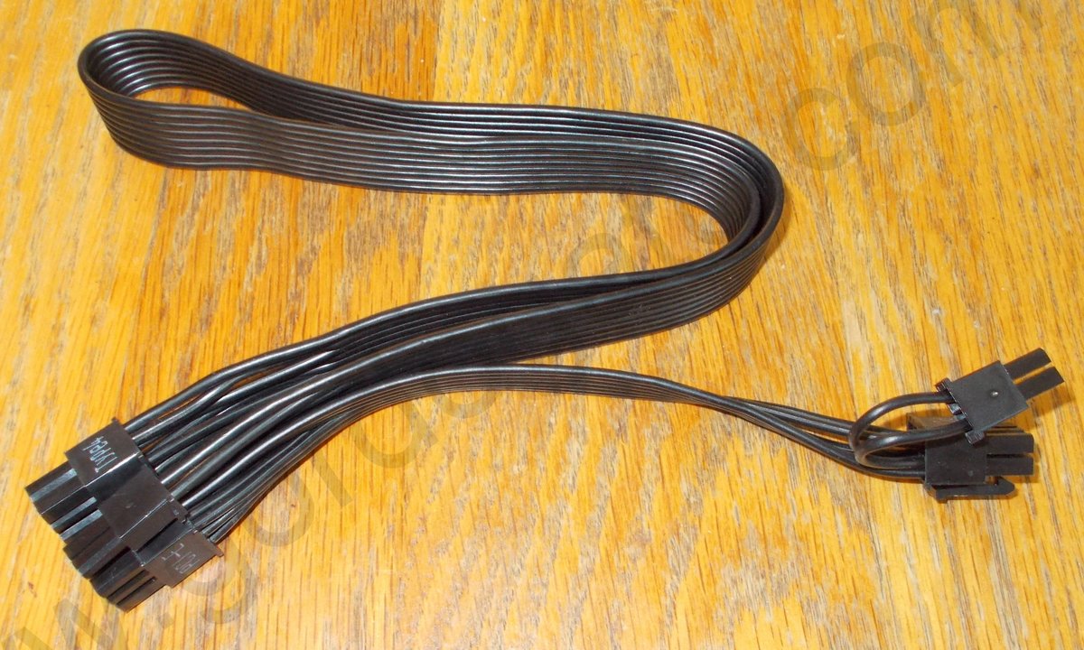 This is an original cable for use with a Corsair CX450M. It is for connecting power to your video card. This cable has 2 VGA power connector ends. It measures about 29″ long overall with about 24″ between the plug which connects to the power supply and the first VGA plug and about 5″ to the next VGA plug. This may be compatible with other power supplies, but please check with your manufacturer for compatibility BEFORE you purchase this item.
