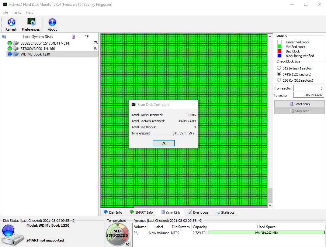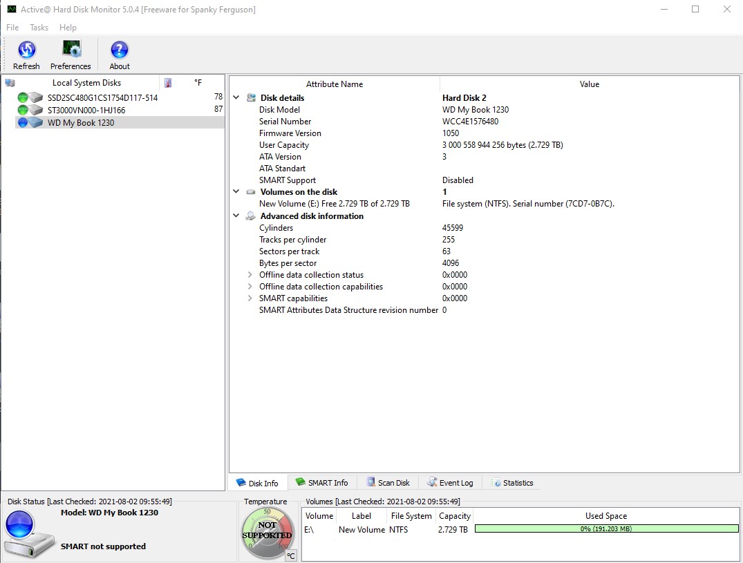 Up for sale is a used 3TB external (3.5″) hard drive. This was used as a destination for backups for several years and has now been retired. This does not have the original AC adapter – it comes with one we purchased later. It has been wiped clean and scandisk found no errors. This hard drive is in good, used condition and what you see in the pictures is what you get. This drive has a GPT partition with one volume which has been formatted with NTFS.