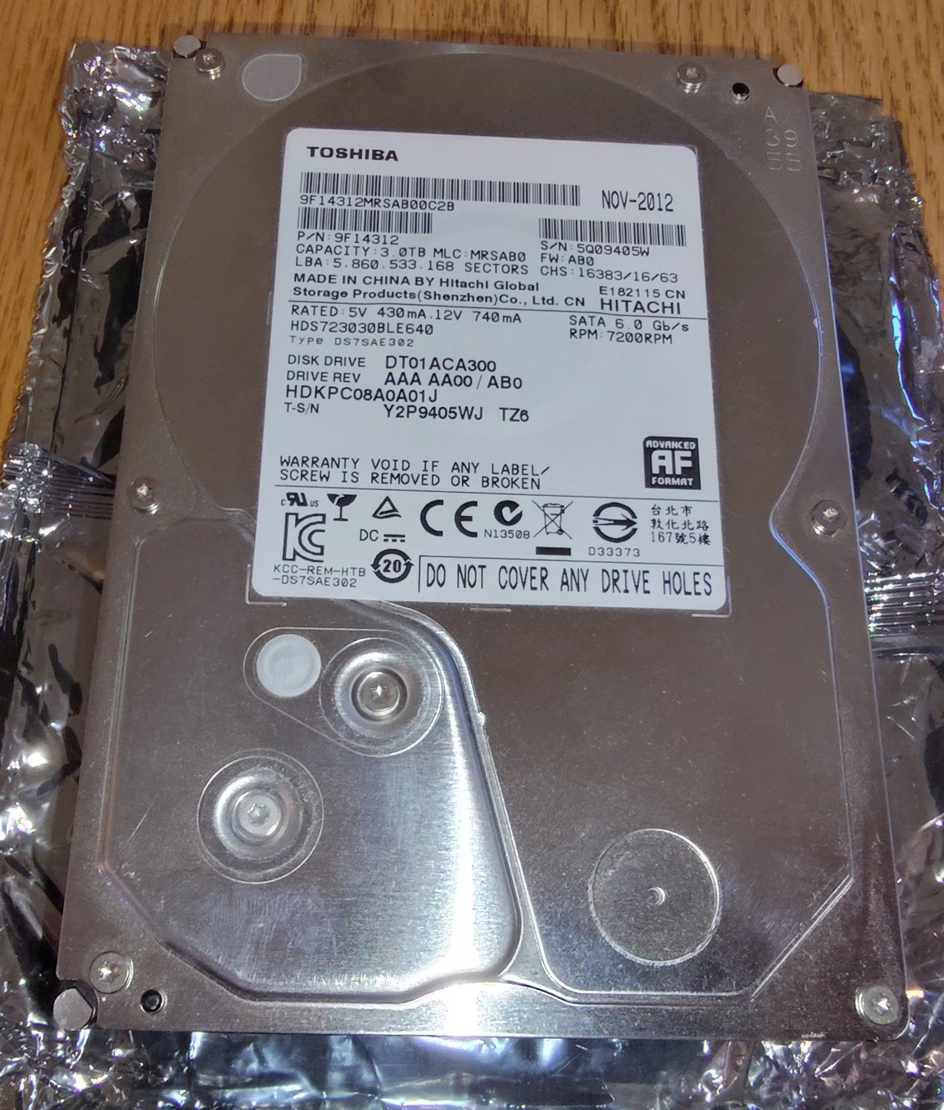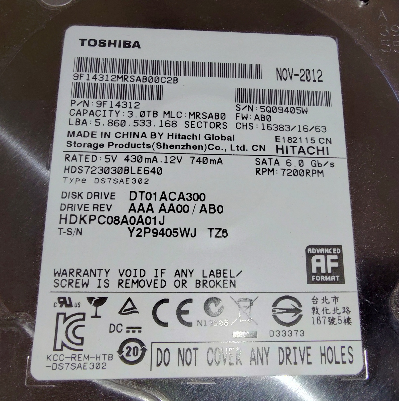 - Toshiba 9F14312 Manufactured by HGST (Hitachi) DT01ACA300