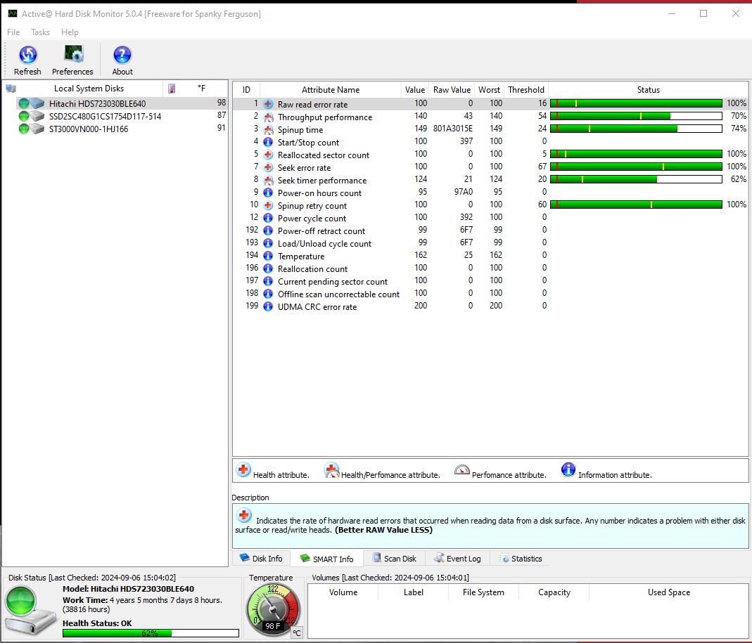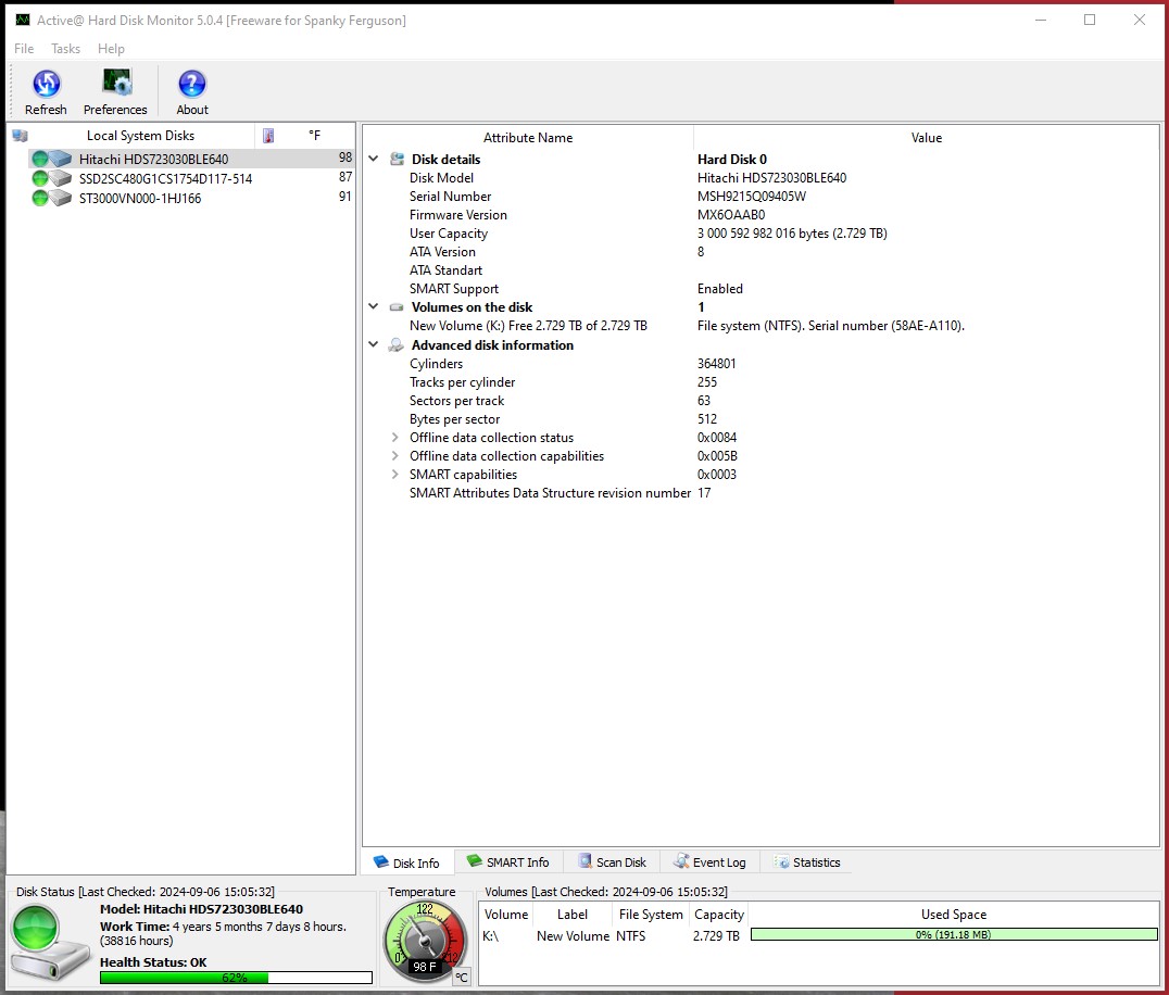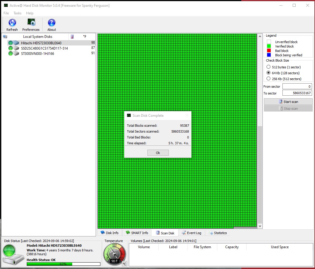 - 38816 (4 Years, 5 Months, 7 Days, 8 Hours) Power-On Hours Count (According to Active Hard Disk Monitor 5.0.4 )
