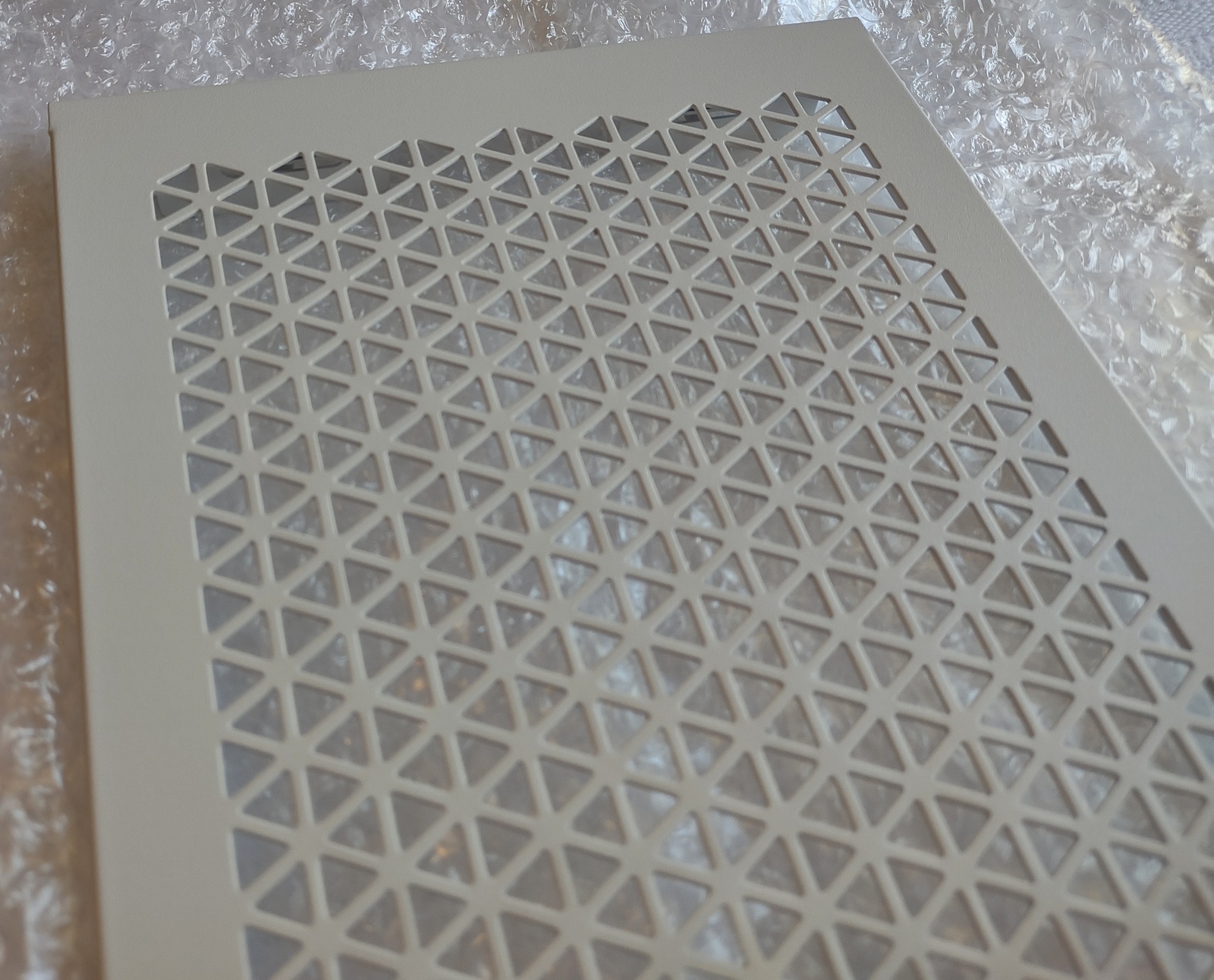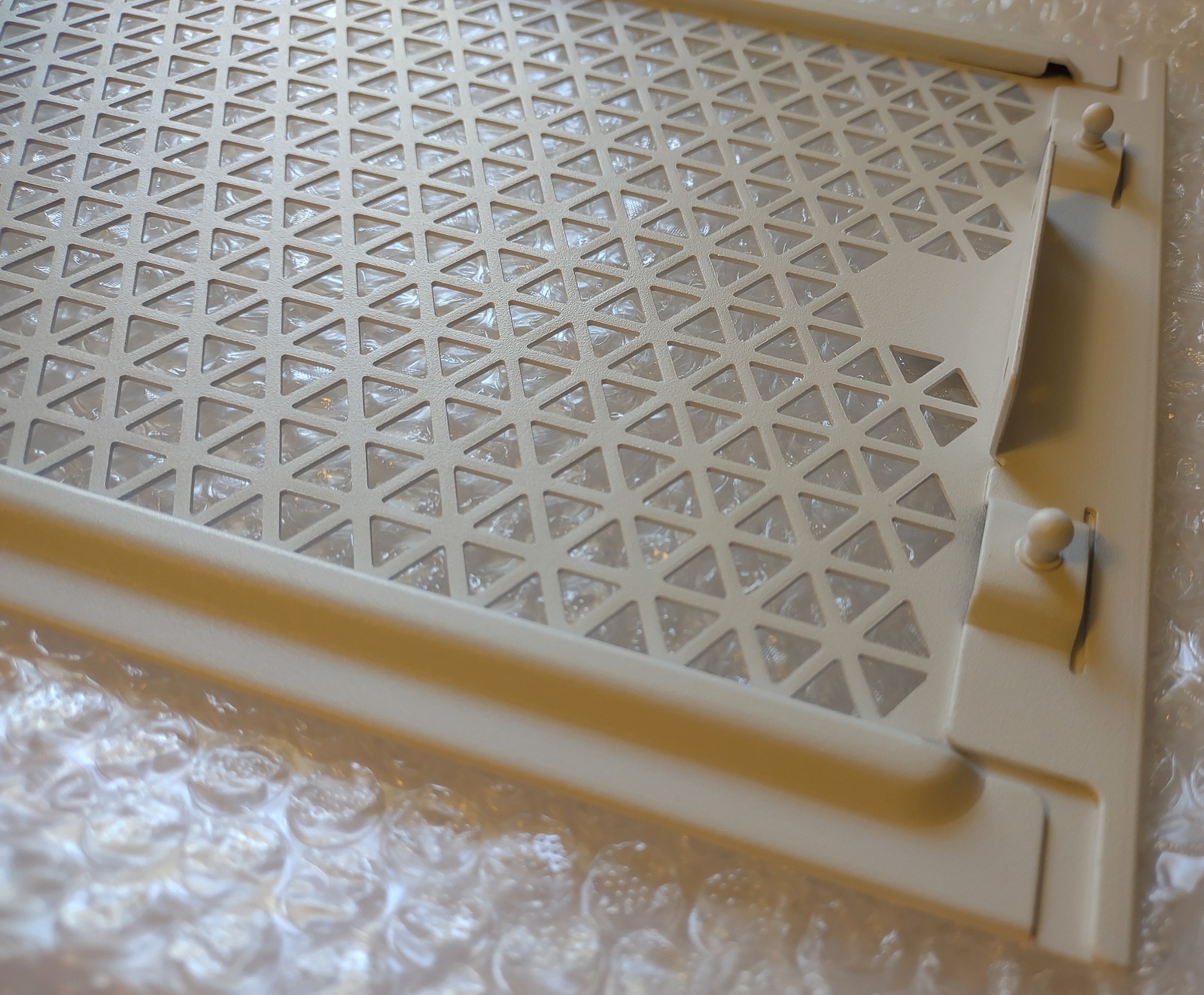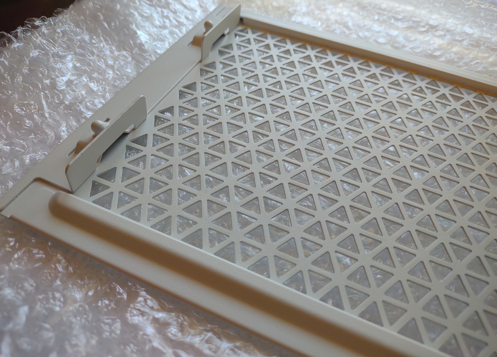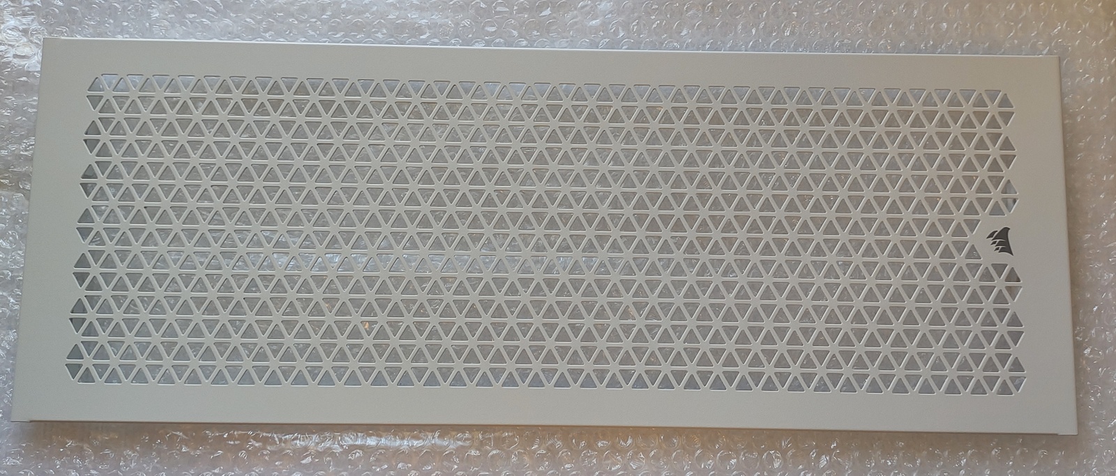 Up for sale is a white metal front panel for Corsair 5000D Airflow computer cases. These are for Corsair 5000D Airflow cases, but may be compatible with others, but we’re not sure on that one, so please check with Corsair for compatibility with your case BEFORE you purchase this item. This is in unused condition. It measures about 19 1/8″ long by about 7″ wide by about 1/2″ thick (measured at the tabs).