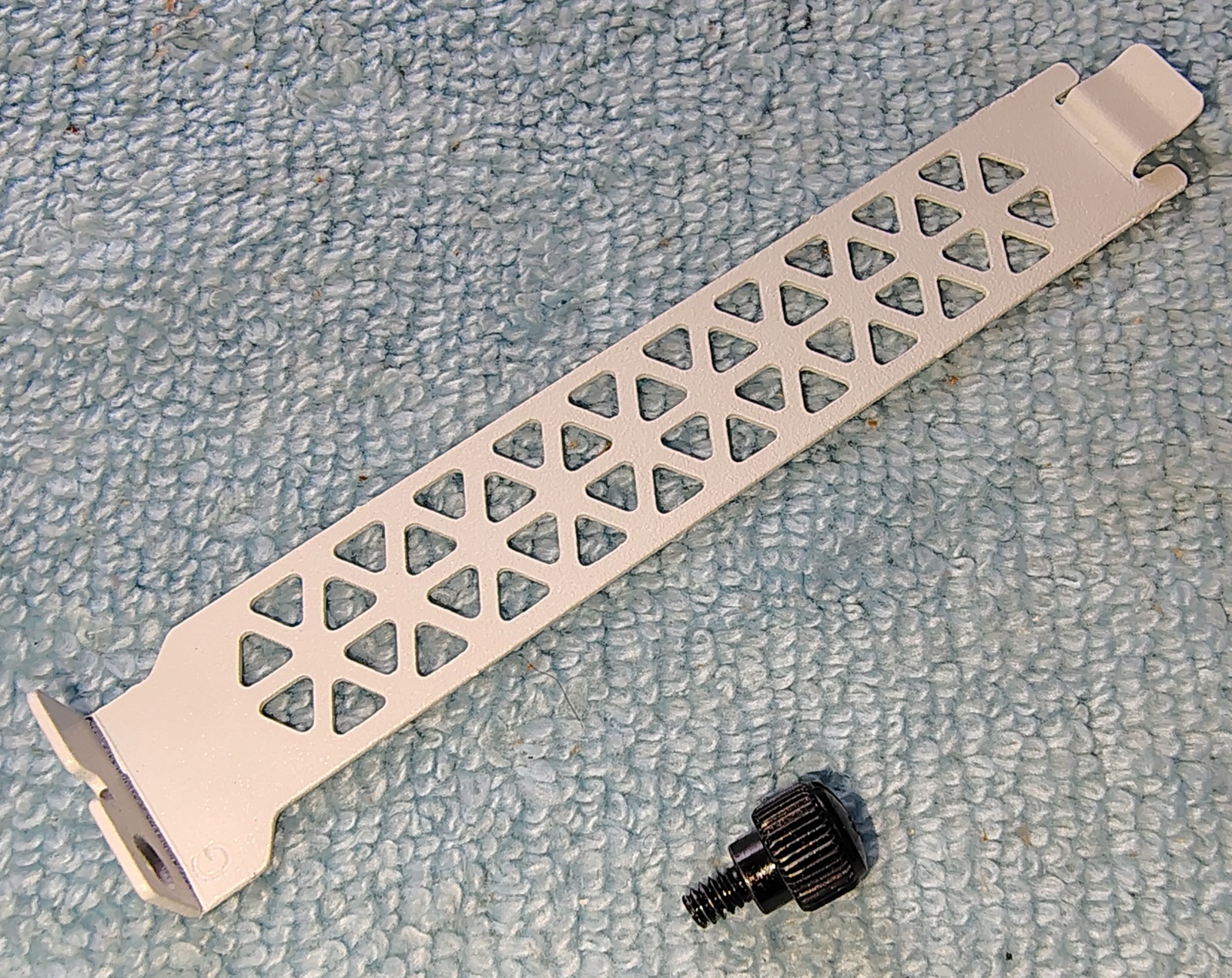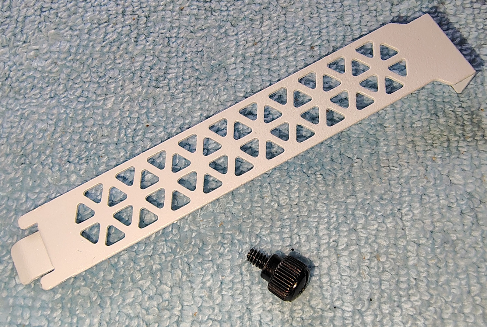 Up for sale is a white PCIe slot cover bracket for Corsair iCUE 4000X / 4000D / 4000D Airflow computer cases. These are in unused condition and may be compatible with others since PCIe slot covers are pretty standard. Please check with Corsair for compatibility with your case BEFORE you purchase this item. If you’re looking for one to match what you’ve got with a Corsair iCUE 4000X / 4000D / 4000D Airflow case, then this might be it! Hope someone out there on the interwebs can put it to use! The black 6-32 thread thumb screw is also included. The ‘regular’ white case came with Grey PCIe slot covers, and the all white model came with these white covers.