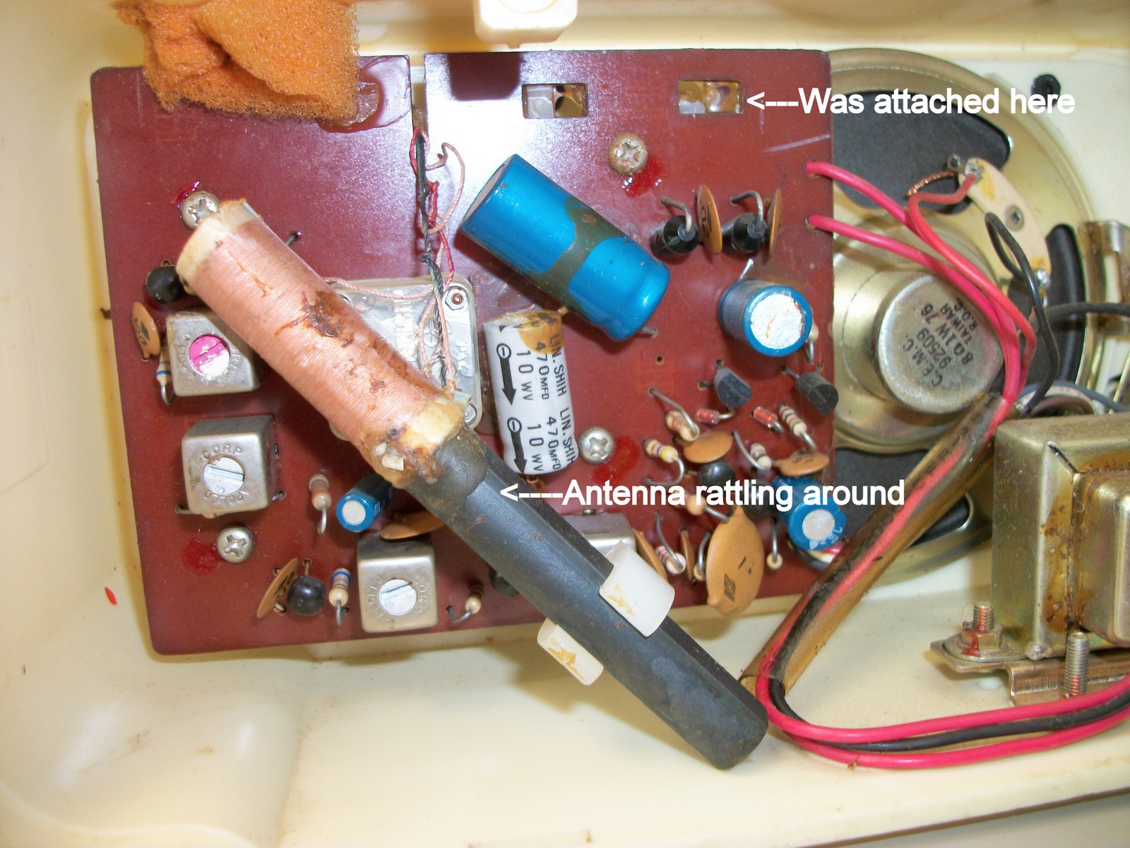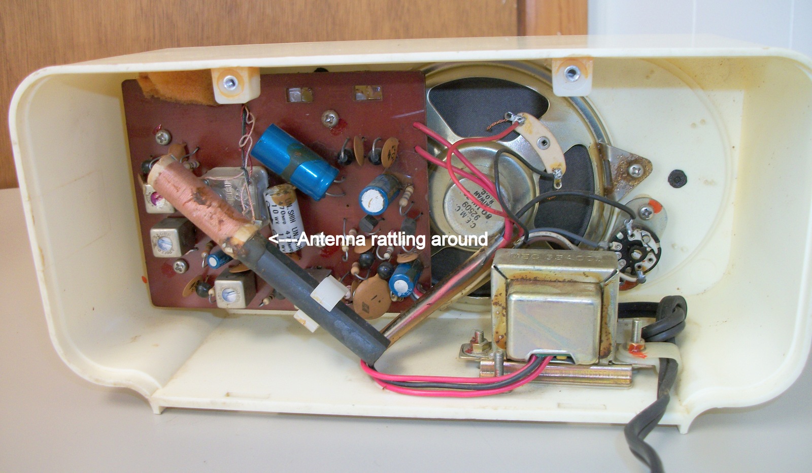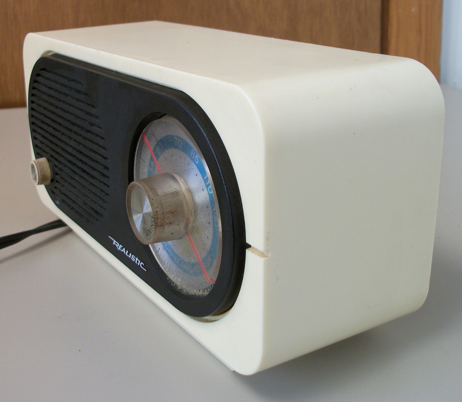 Up for sale is a used Realistic Model 12-686 Vintage AM Radio. This old radio works, but has a bit of static when adjusting the volume – after the volume is adjusted, it plays just fine. The antenna has broken loose and is rattling around inside and needs to be repaired – the radio will be shipped with foam inside to prevent the antenna from rattling and the foam will need to be removed before you use the radio. It measures about 8 3/4″ wide X 4 1/4″ tall X almost 3″ deep.