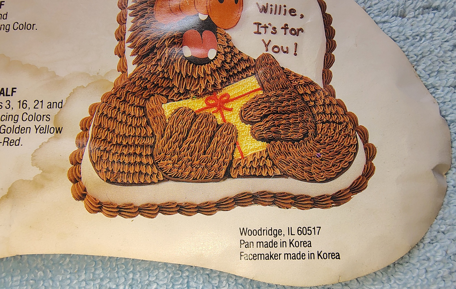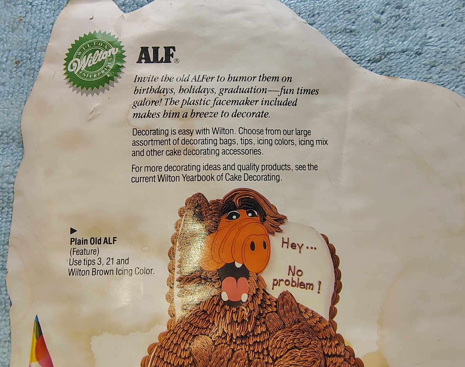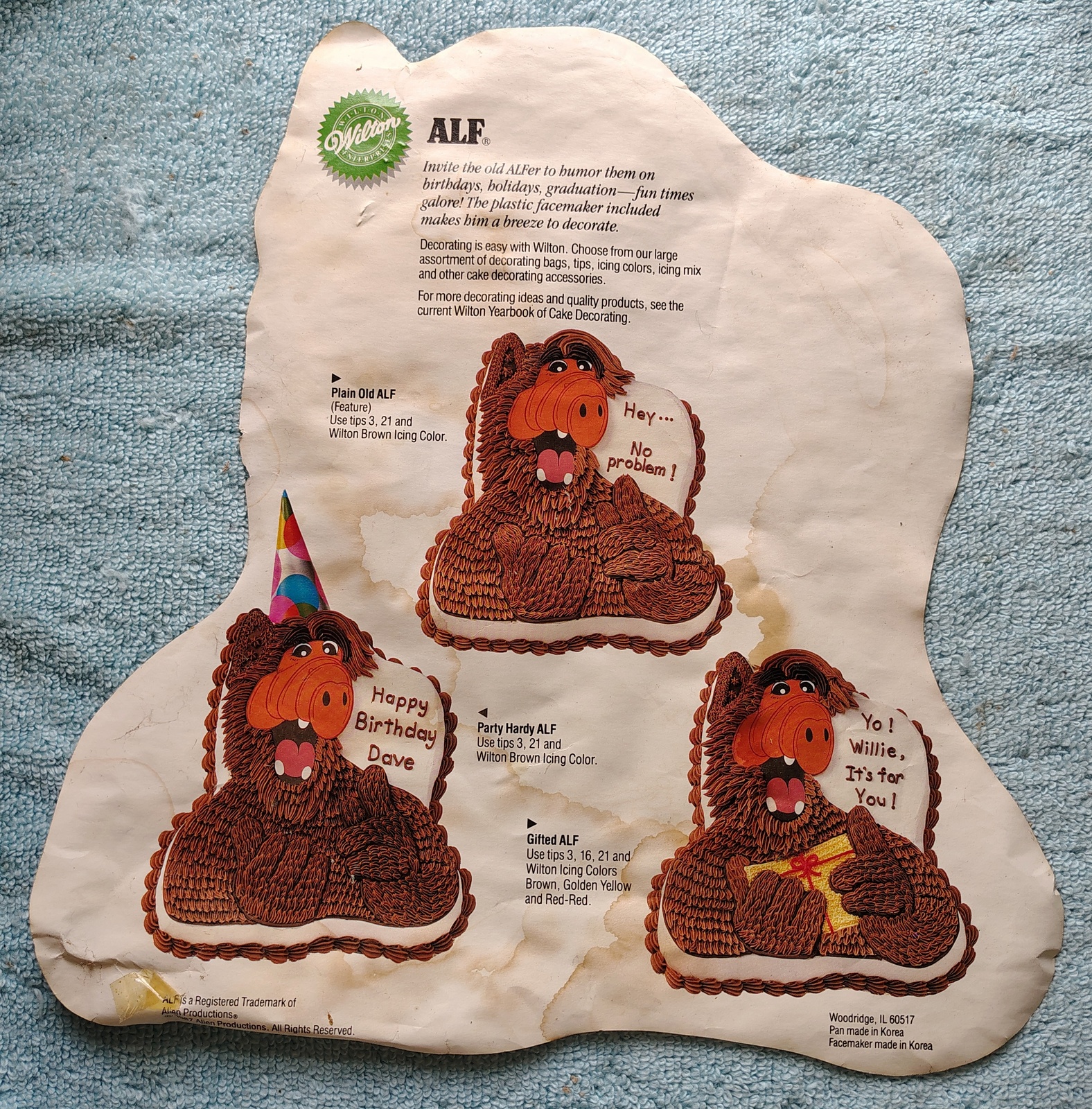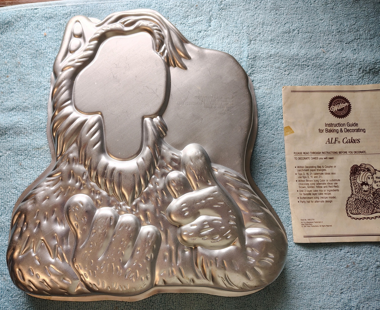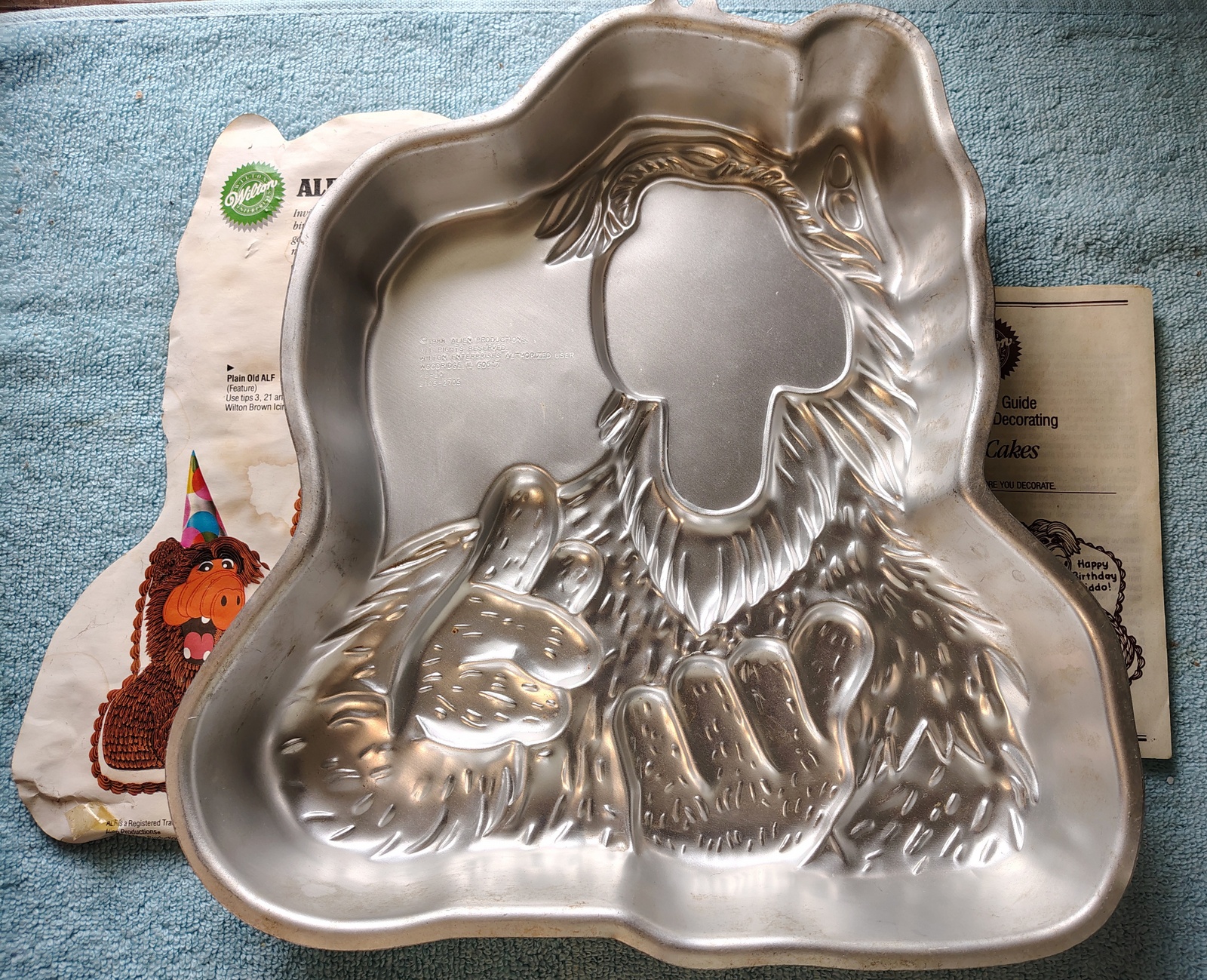 Up for sale is an unused cake pan manufactured by Willard in Korea from 1988 / 1987 – what you see in the pictures is what you get! This measures about 13″ wide by about 12 inches long by about 2″ thick. This features that lovable ALF (Alien Life Form) who was always trying to eat the cat from the 1980’s sitcom.