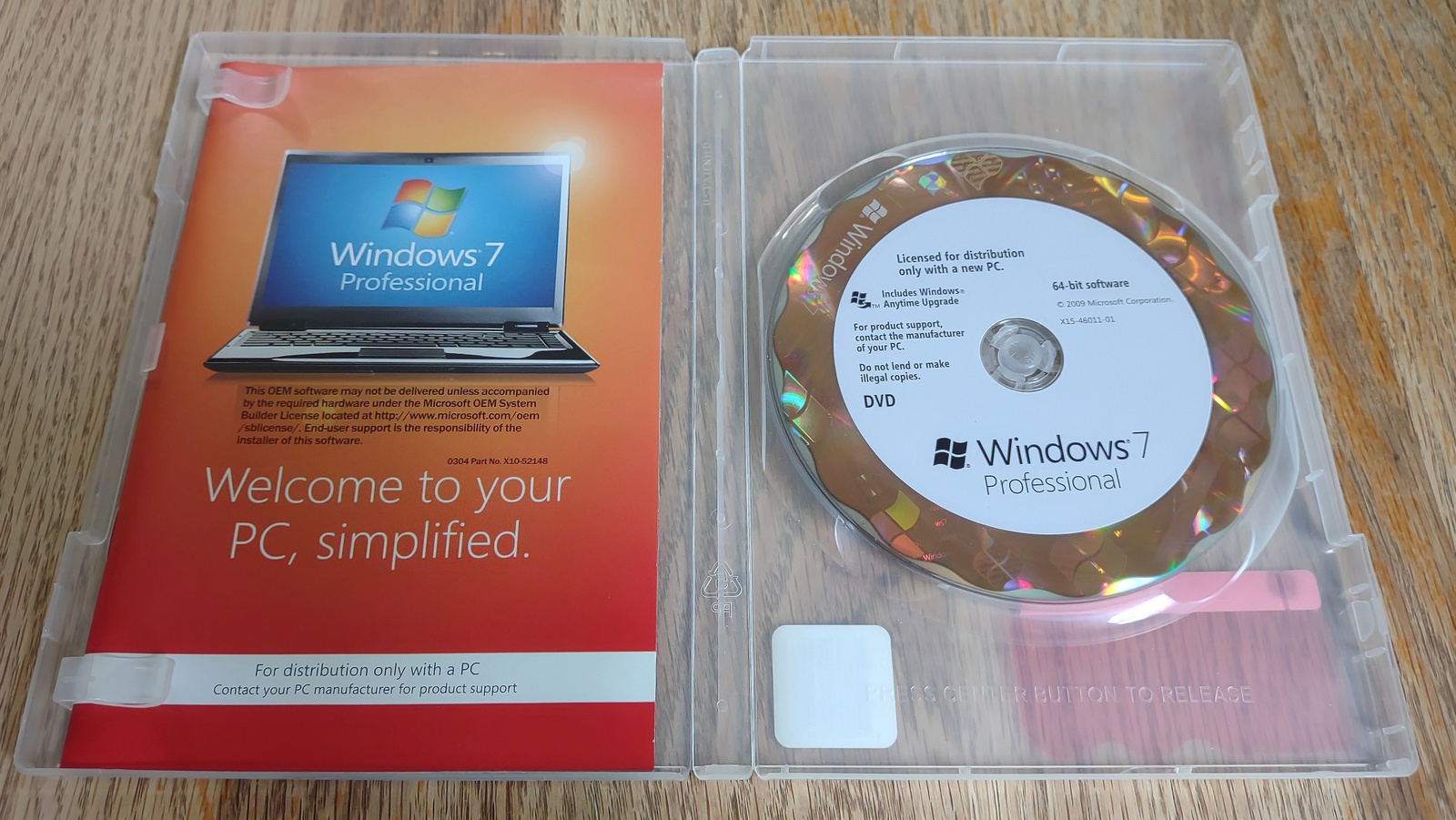 Up for sale is a used Microsoft Windows 7 Professional 64-bit original install DVD from 2009. This is for installing Windows 7 Professional on your home-built PC. X15-46011-01.