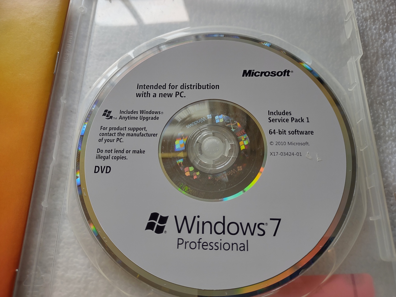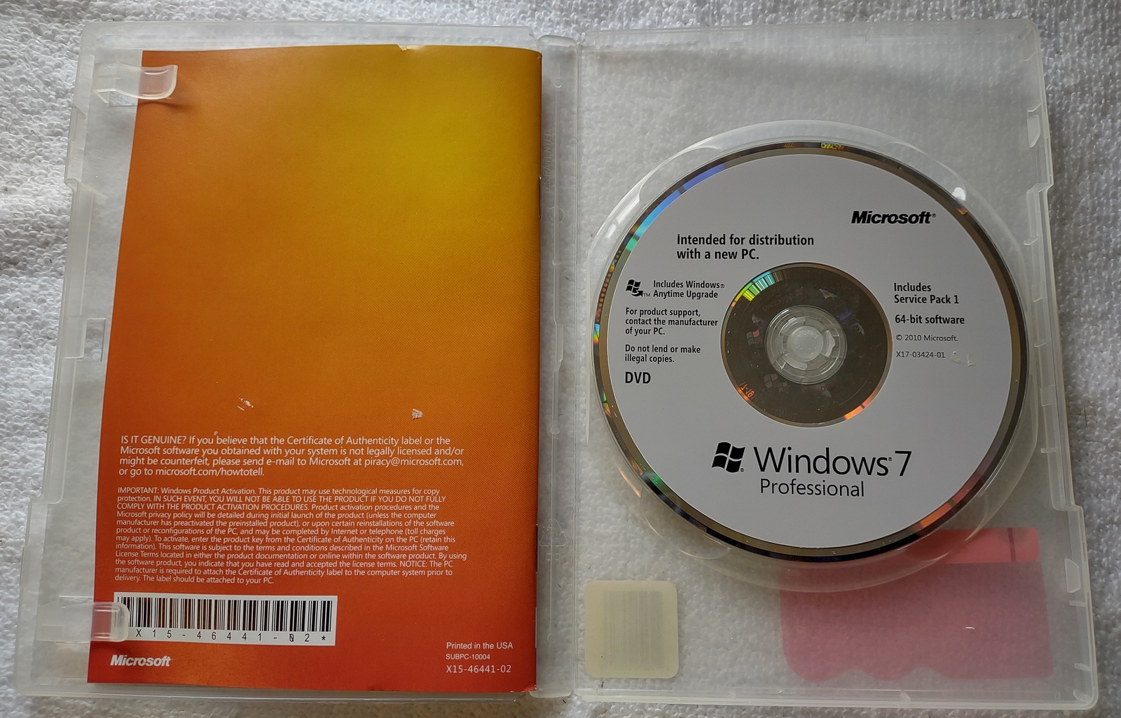 Up for sale is a used Microsoft Windows 7 Professional 64-bit original install DVD from 2010. It includes Service Pack 1. This is for installing Windows 7 on your home-built PC. X17-03424-01.