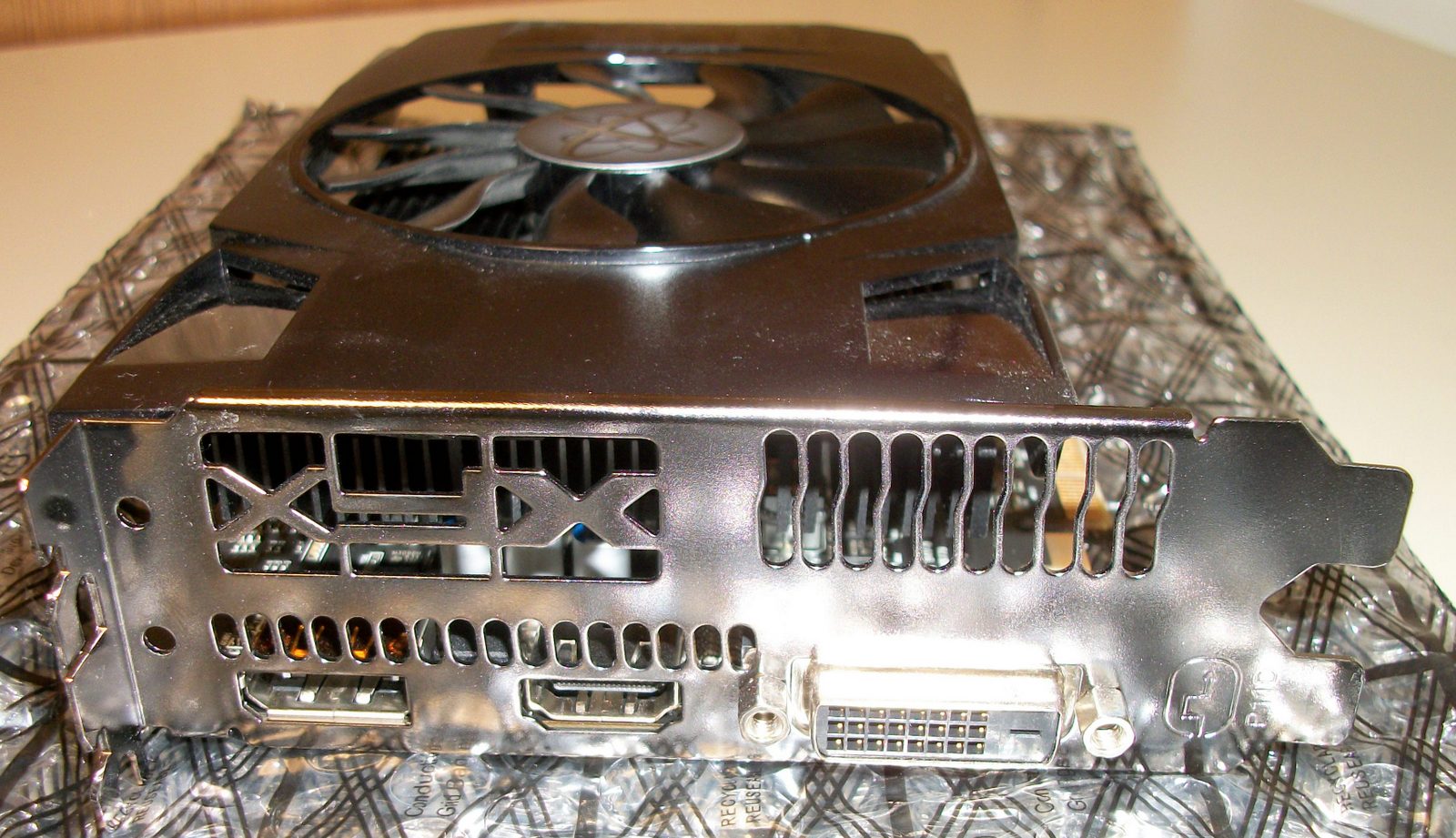 Up for sale is an XfX AMD Radeon 460 PCIe Video Graphics Card. This card is DEFECTIVE! Sometimes the computer would switch from running two screens to one screen and device manager would report ‘Device . . . . had a problem starting’ and sometimes it would cause a Blue Screen. We replaced the video card with a new one and the problems went away. We put this card into service in May of 2017 and it failed this summer. What you see in the pictures is what you get.