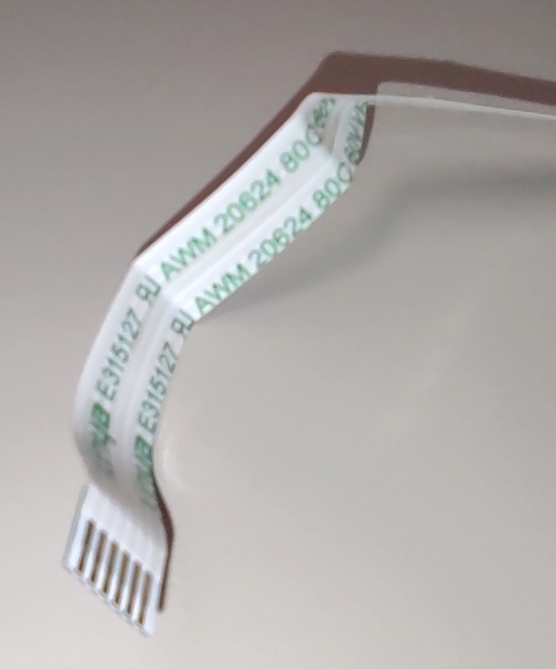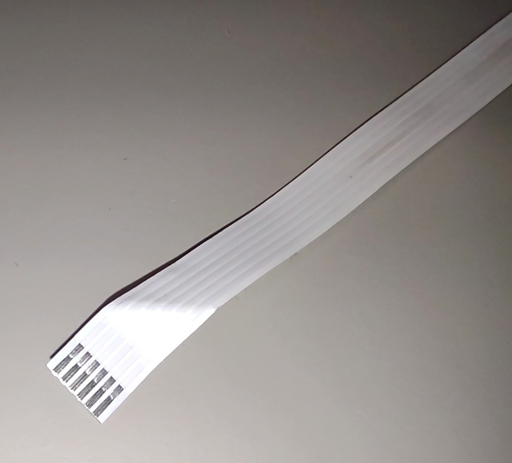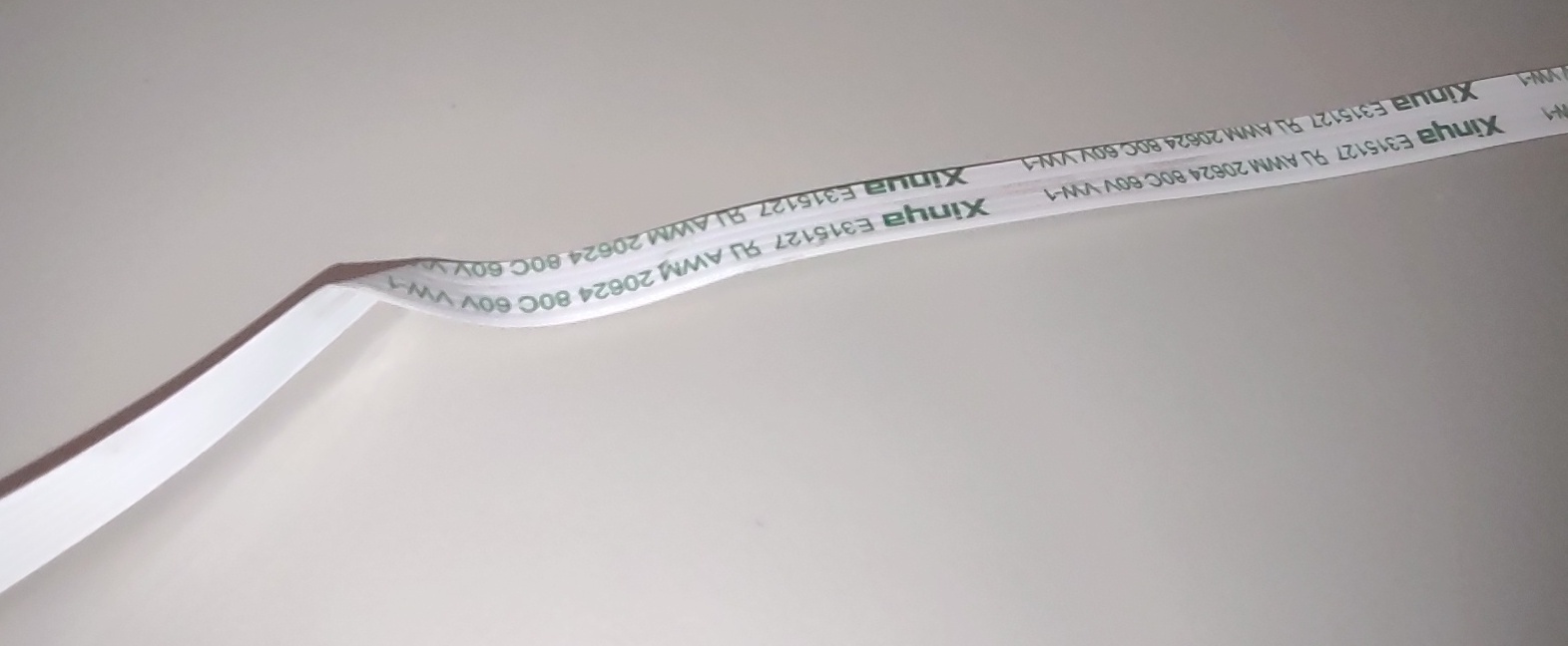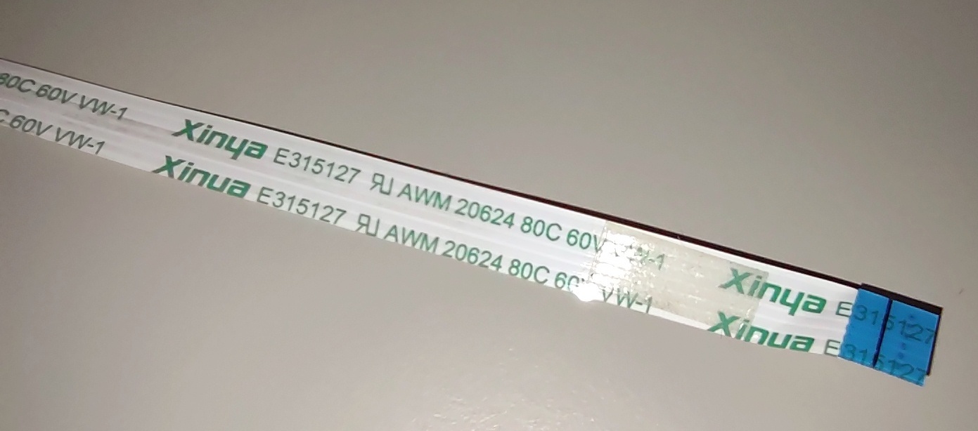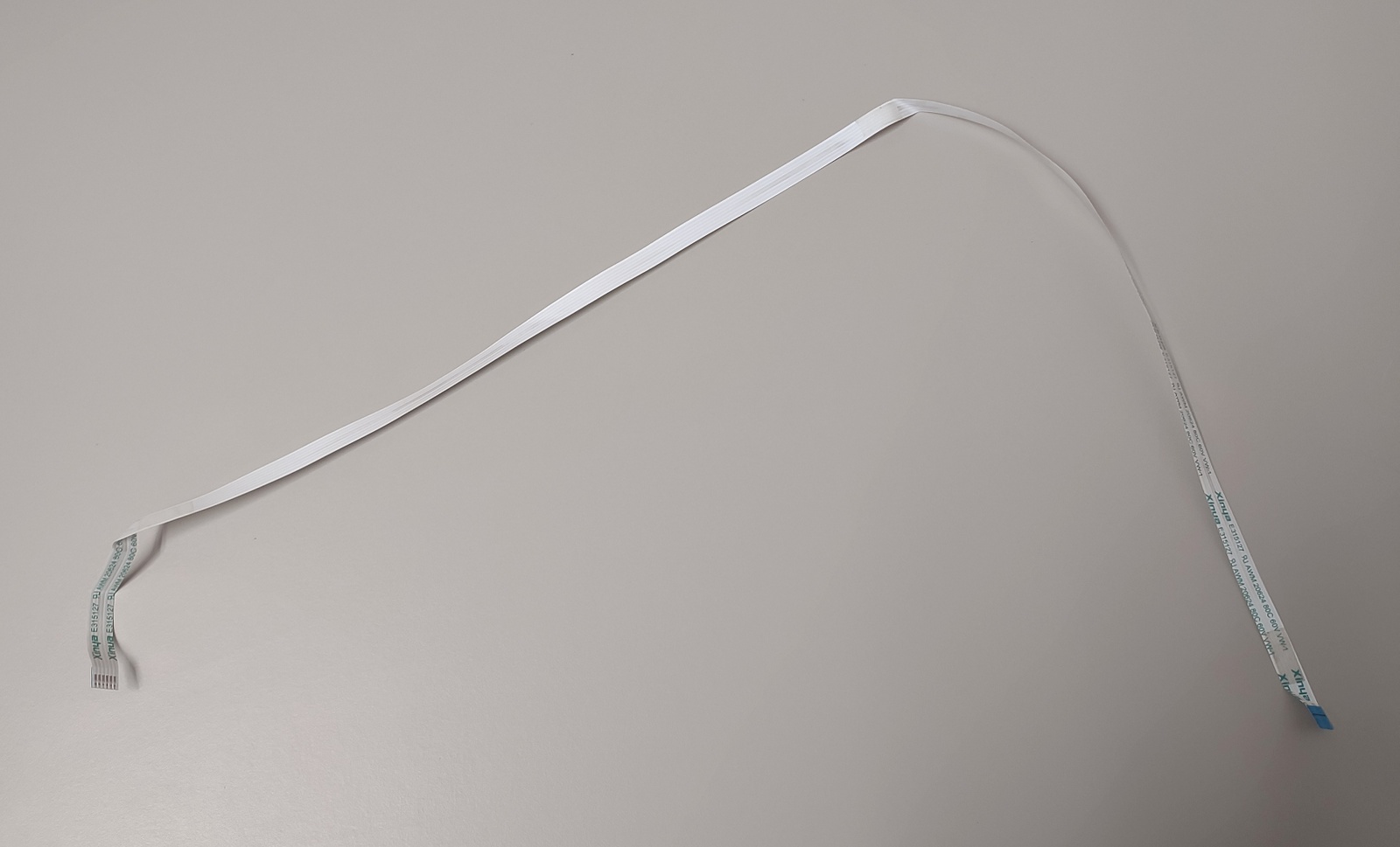 Up for sale is a used cable in good condition. It measures about 54cm long by 7mm wide. 6 Conductors / Pins. Xinya E315127 AWM 20624 80C 60V VW-1. This has some adhesive residue and some creases from where the cable was folded. It has one end with the six pins on the same side as the print and one end where the six pins are on the side without any printing. Hope someone out there on the interwebs can put it to use!