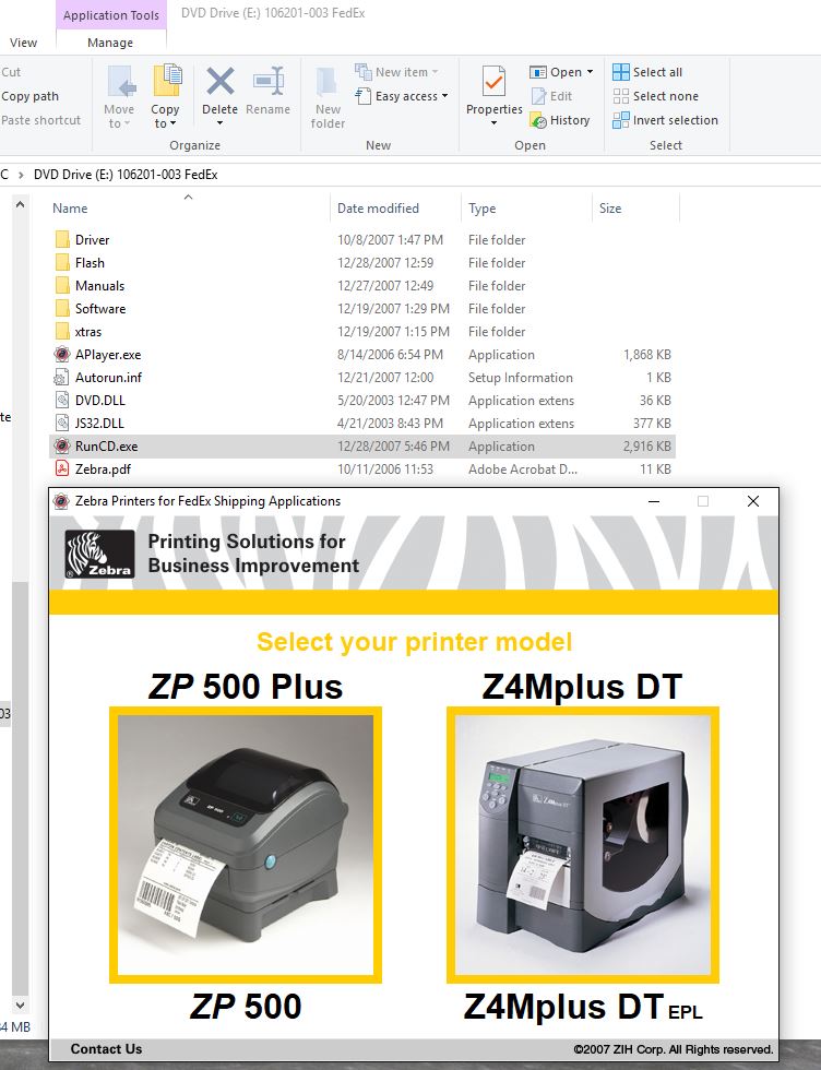 Up for sale is a miniature CD with the drivers for an FedEx Shipping System Printers: Zebra ZP 500 Plus and Z4Mplus DT for Windows XP, 2000 – from 2008.