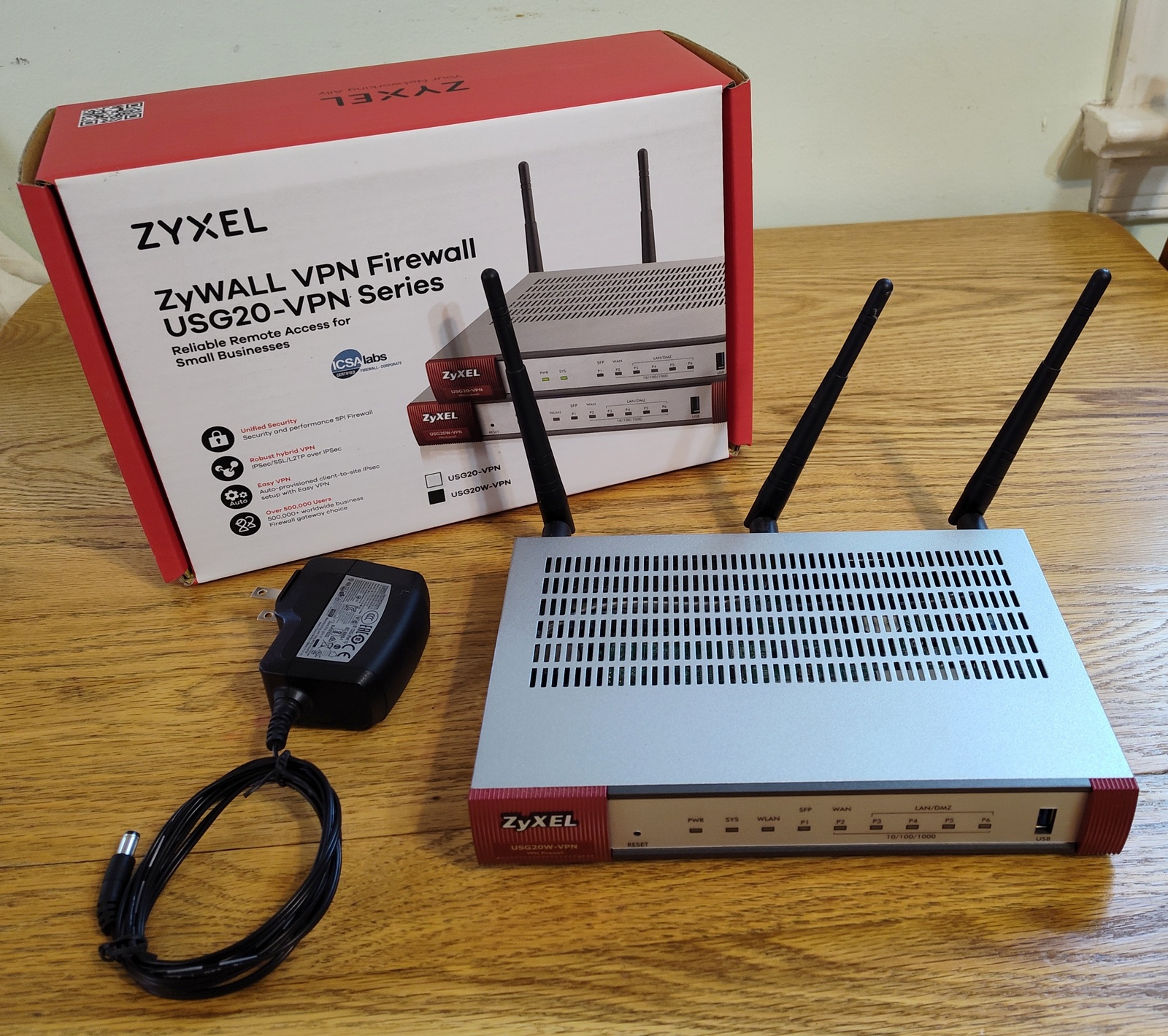Up for sale is a good used Zyxel USG20W-VPN firewall. We put this one into service in September of 2019 and just retired it in September of 2023. We have replaced it with a newer, faster firewall and now have this one left over. Hope someone out there can put it to use! It is missing one of the rubber feet and has been reset to the defaults and is ready for you to configure as you like.