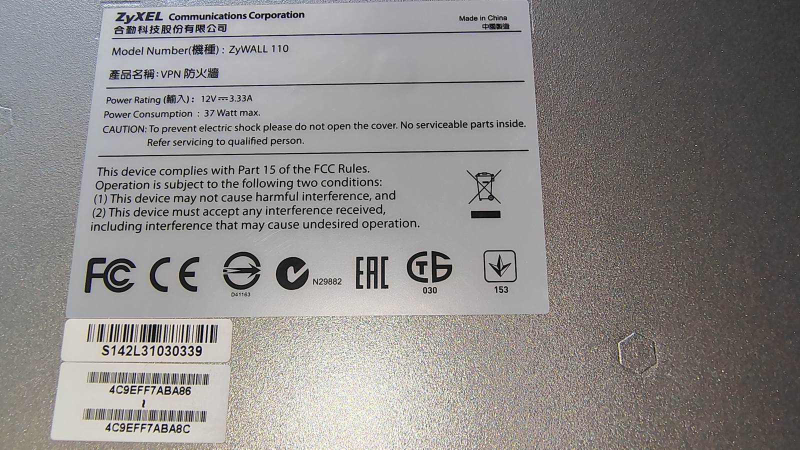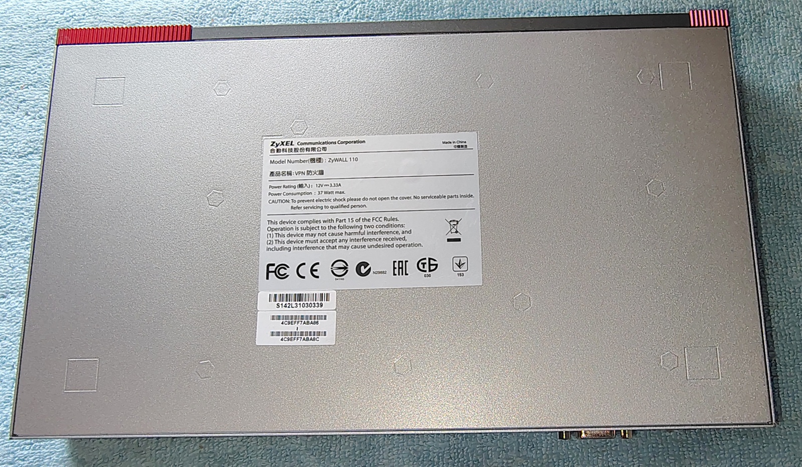 - ZyWALL 110 VPN firewall appliance (End-of-Life model)